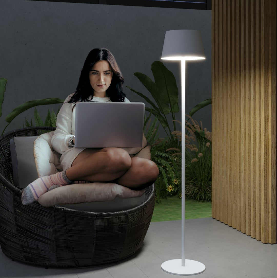 Gulvlampen fra Top-light køre på batteri og kan lyse i mere end 9 timer før den skal oplades.