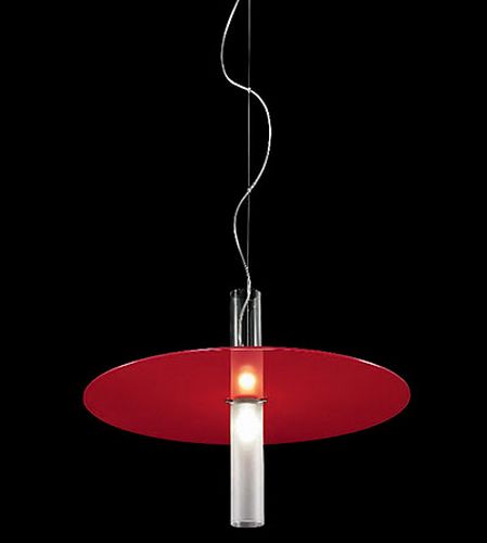 Designer: Massimo Tonetto Beskrivelse: Enkel og elegant glaspendel. Midt på glasrøret, hvor øverste halvdel er krystalklart og nederste halvdel er sandblæst, hænger en 5 mm tyk, farvet glasplade. Konstruktionen giver indtrykket af en enkel og nærmest svævende lampe.