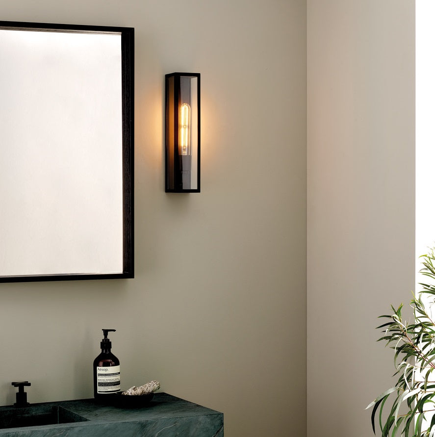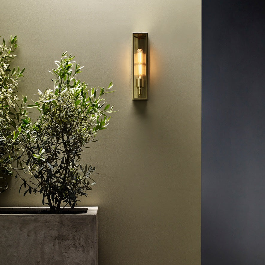 Smuk væglampe med klasseficering IP44, hvilket betyder at det er velegnet til vådrum og til udendørs brug.