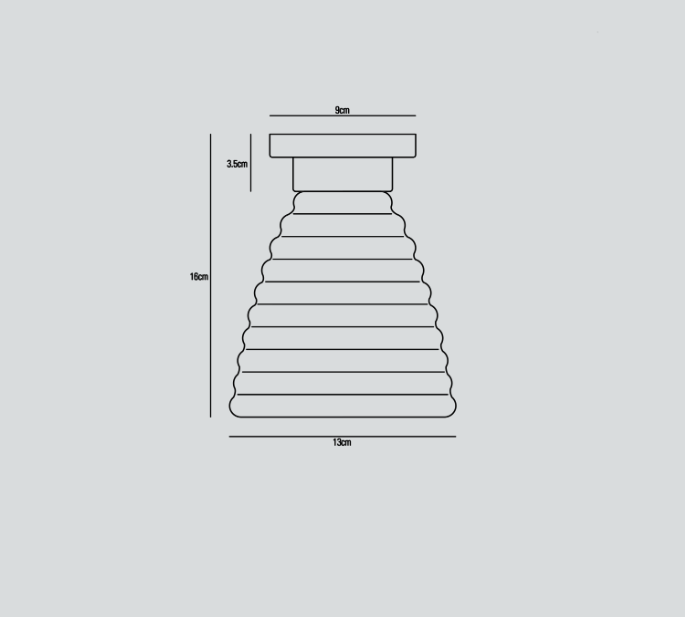 Skærmen størrelse Ø 13 cm og højden er 16 cm