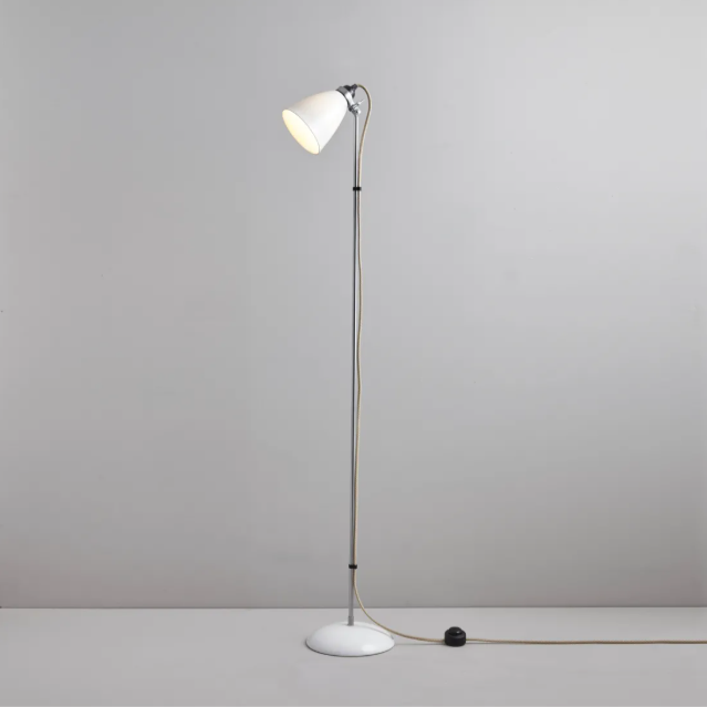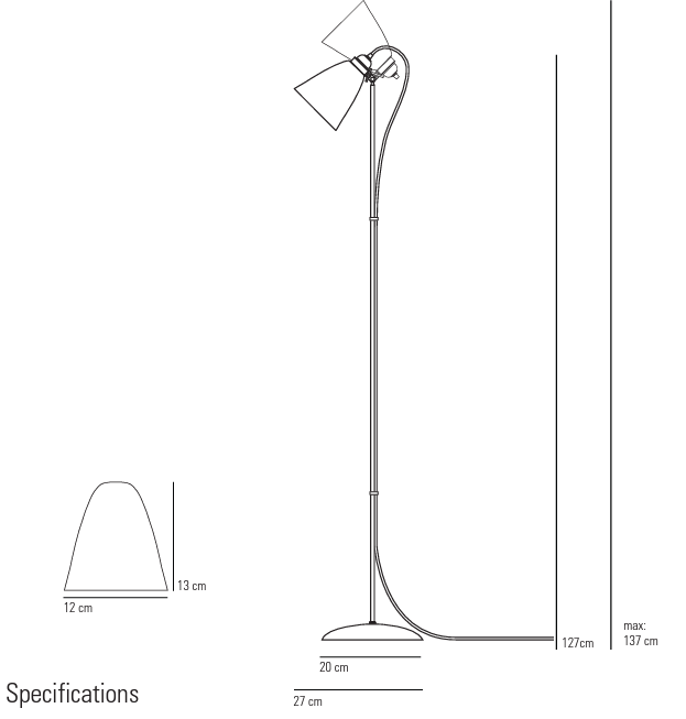 Original håndlavet porcelæns fod og skærm og poleret aluminium stel.