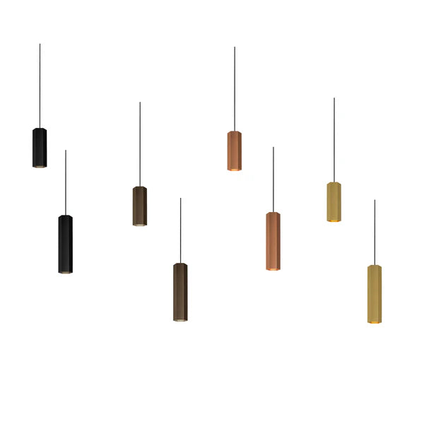 Hexo pendlen fås i farverne hvid, grå, sort, guld og kobber .