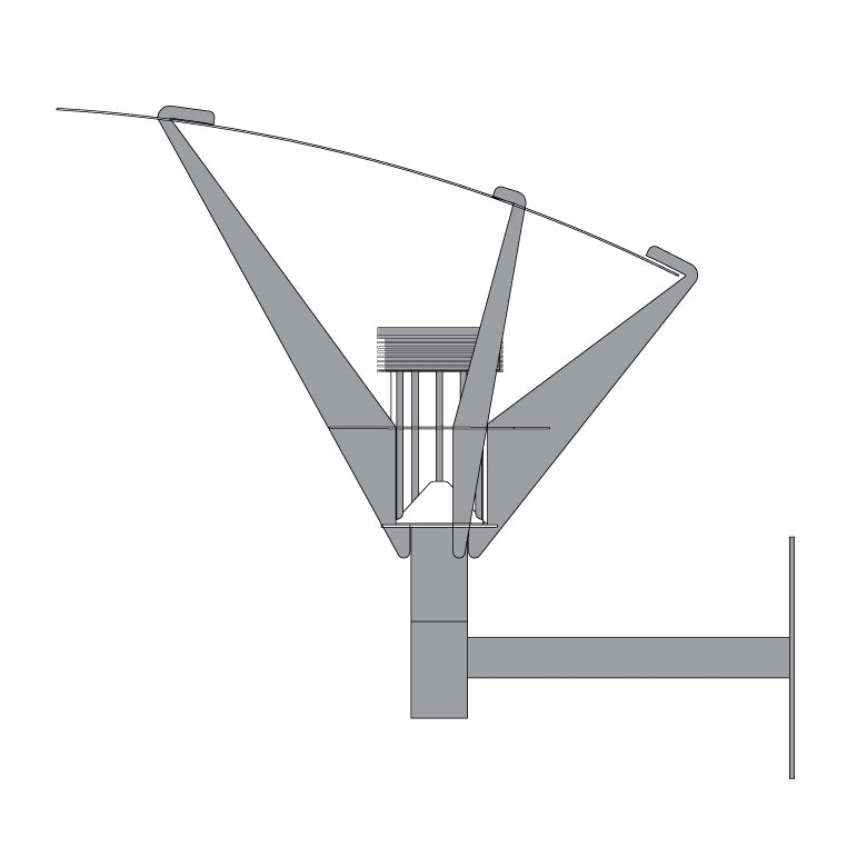 Opbygning: Skråstillet armatur med åbent design. Vinklet reflektor indbygget i glasset for optimal lysvinkel. Materiale: Top-, mellem- og bundskærme samt armatur og skråstivere i varmgalvaniseret stål, skruer og møtrikker i rustfri stål.