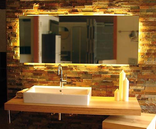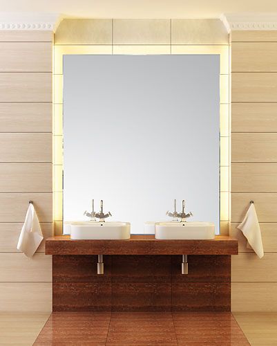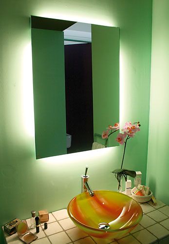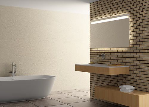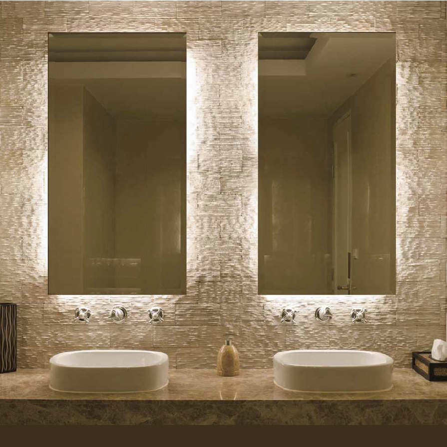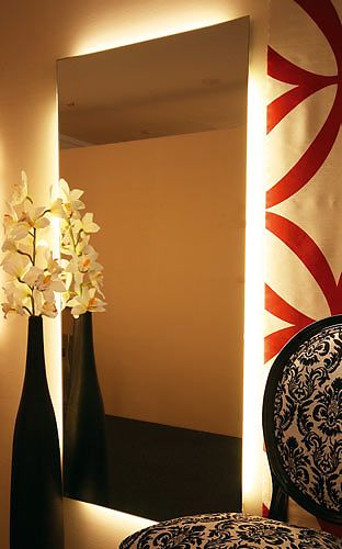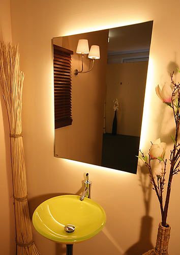 Lyset er indirekte, så lyset kastes in på væggen og reflektere lyset så der skabes en glorie effekt omkring spejlet, så der må påregnes ekstra lys hvis det skal bruges til at lyse på en foran spejlet som f.eks makeup spejl.
