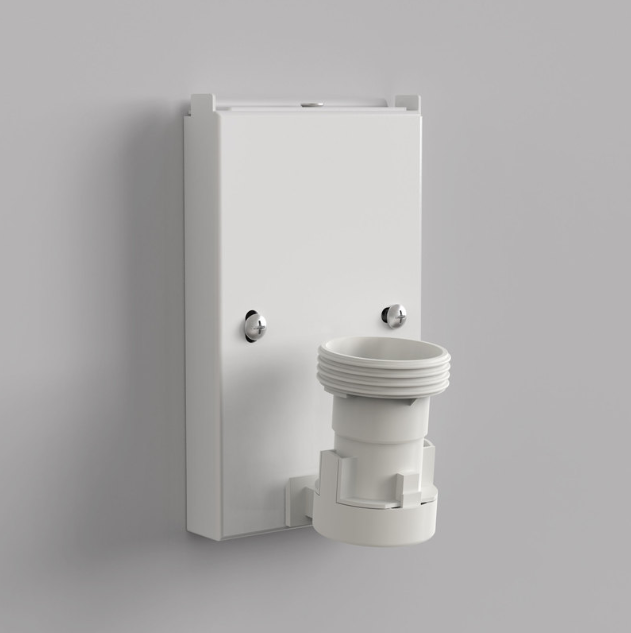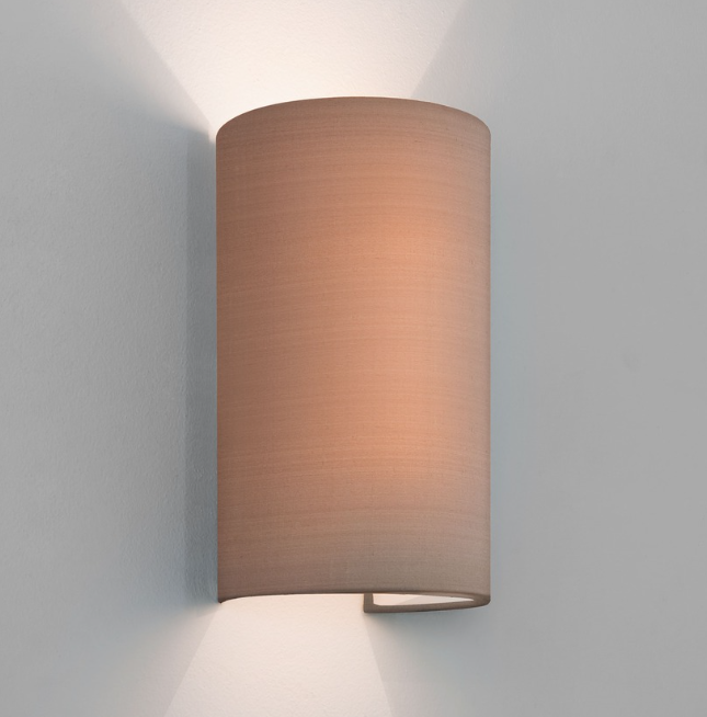 Sammensat væglampe af bagplade 3 og en halv ovalformet skærm, der fås i farverne: hvid eller østersgrå.