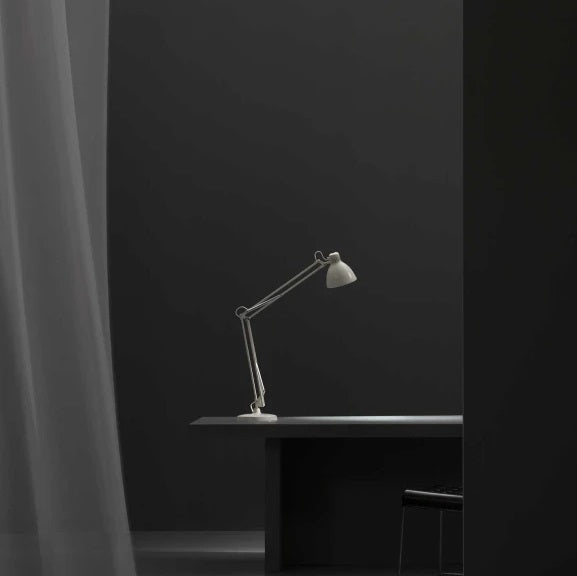 JJ bordlampen fås i følgende farver: Hvid, sort, amarant rød, mica blå, sable grå eller i rustbrun, alle med en hvid inderside.