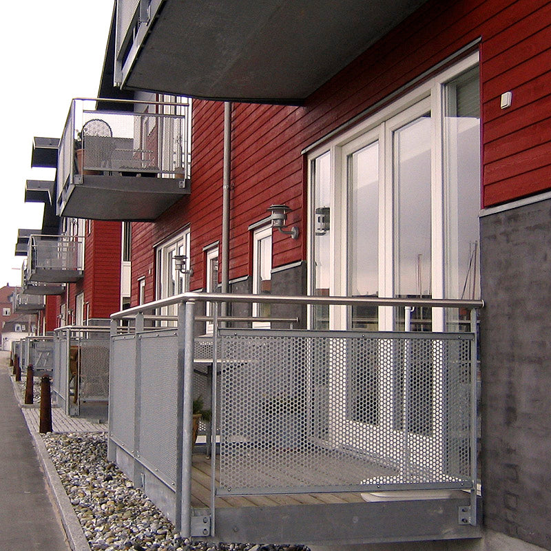 Materiale: Vægarm, Antiblændebånd, mellem- og topskærm i varmgalvaniseret stål, afstandsrør i aluminium, skruer og møtrikker i rustfri stål.