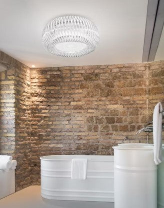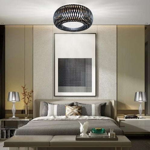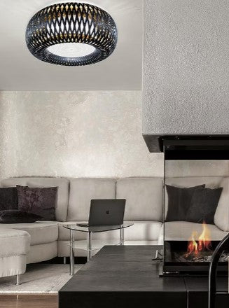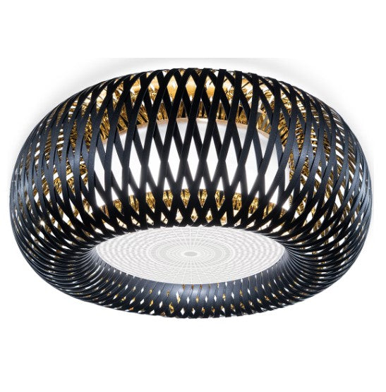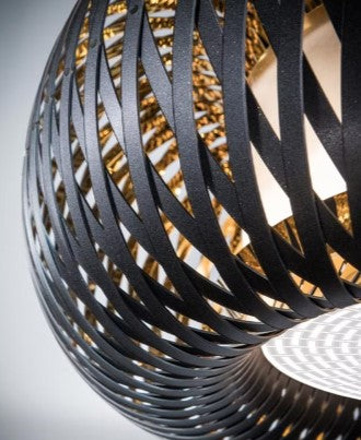 Loftlampen fås i to forskellige farver: Sort/guld eller transparent.