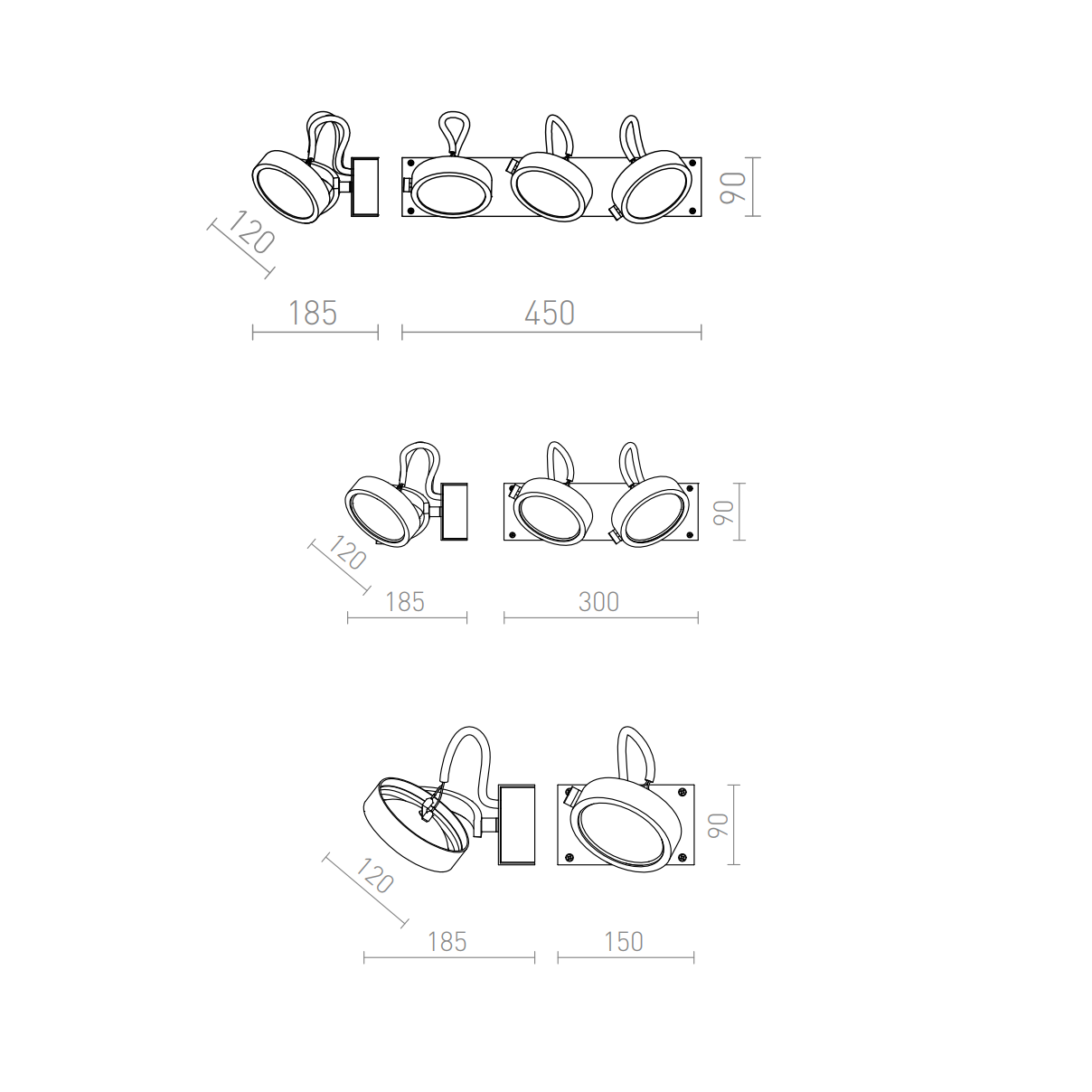 Kelly II: Højde 9 cm, Bredde 30 cm, dybde 18,5 cm, G53 2 x 50W