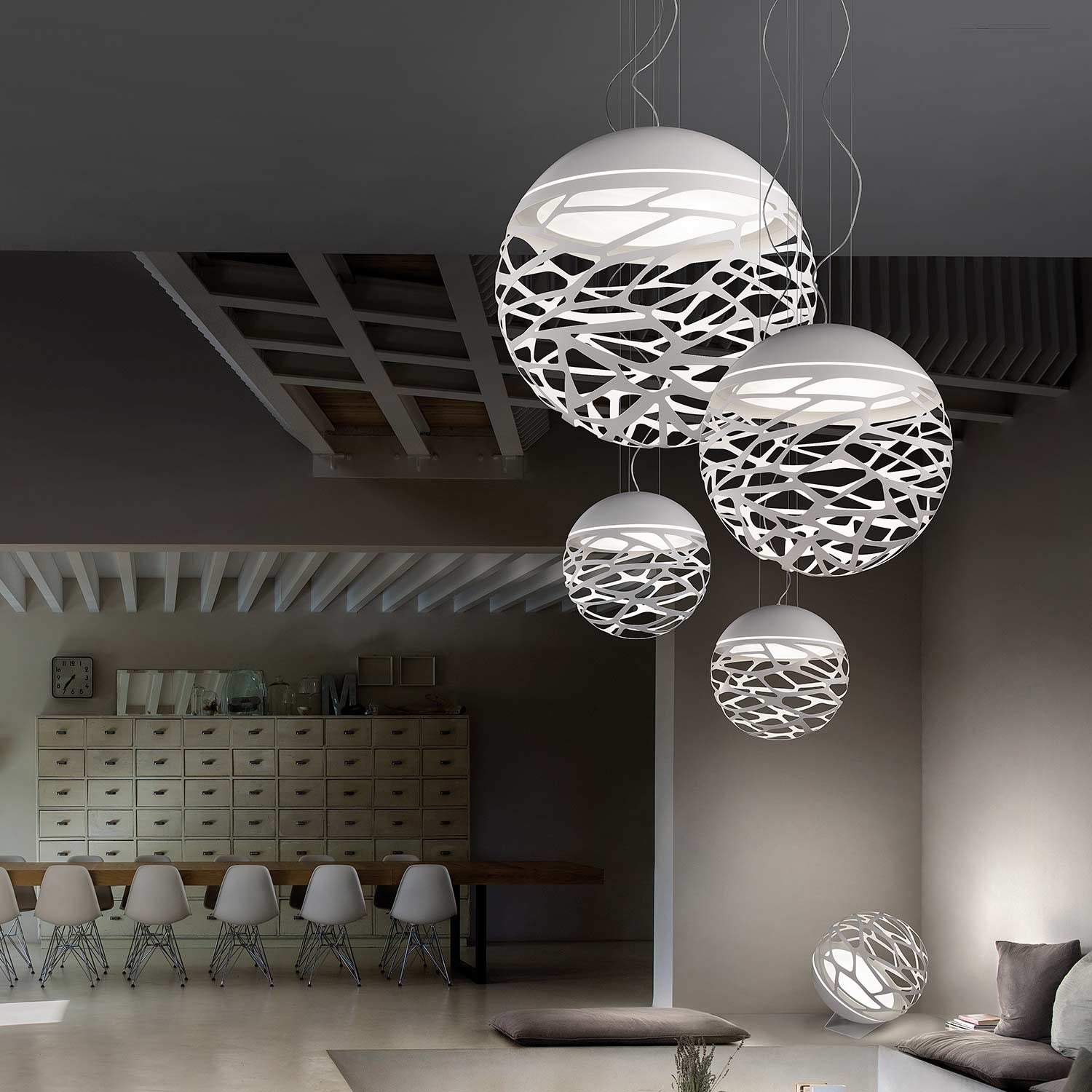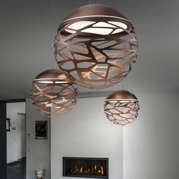 Lampen er lavet af aluminium, som så har fået laserskåret udskæringer, der gør den lidt mere luftig.