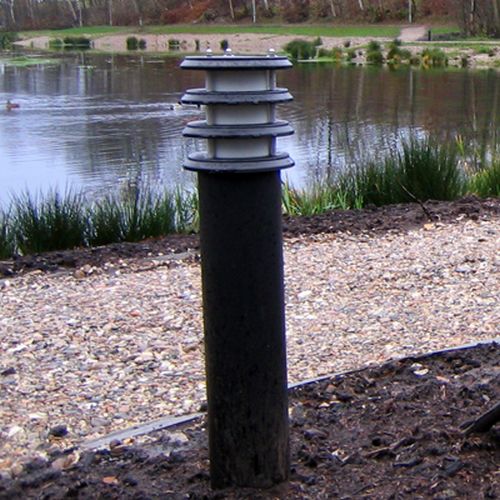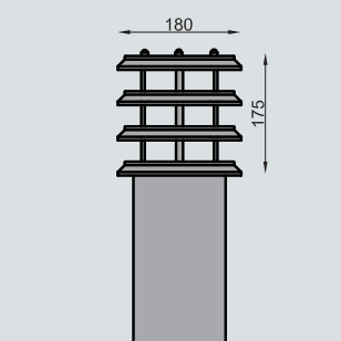 Materiale: Armatur, mellem- og topskærm i varmgalvaniseret stål, afstandsrør i aluminium, skruer og møtrikker i rustfri stål.