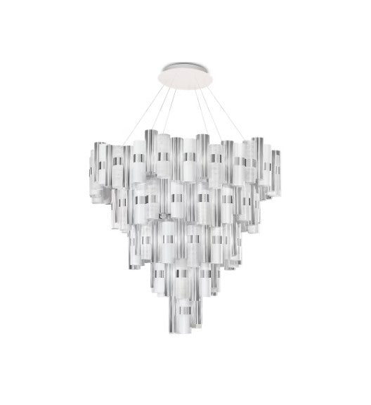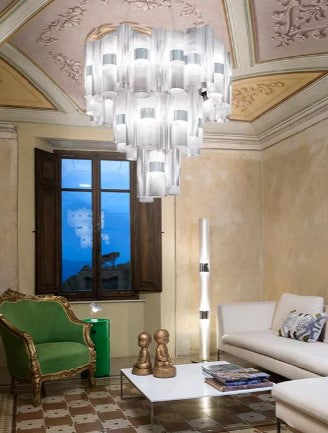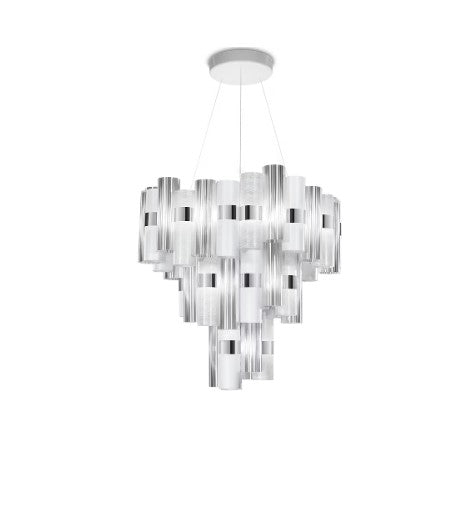 La Lollo fås som væglampe, gulvlampe, lysekrone og som pendel.