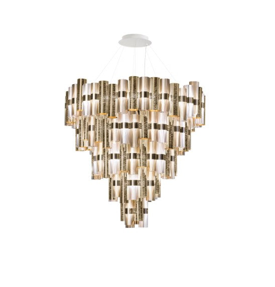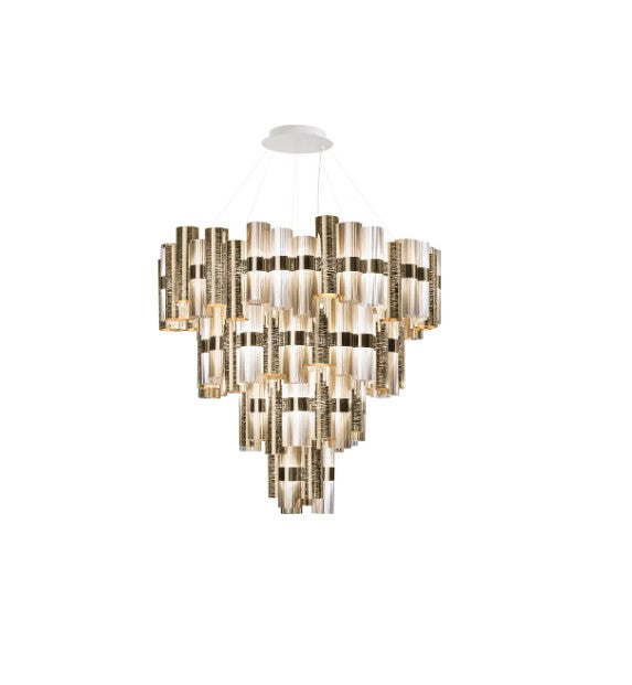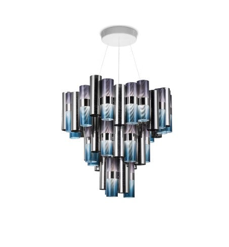 Lysekronen fås i 4 forskellige farver: Hvid, hvid/antracit, blå/sort eller guld, og fås i 3 størrelser: 3-lag, 4-lag eller 5-lag.