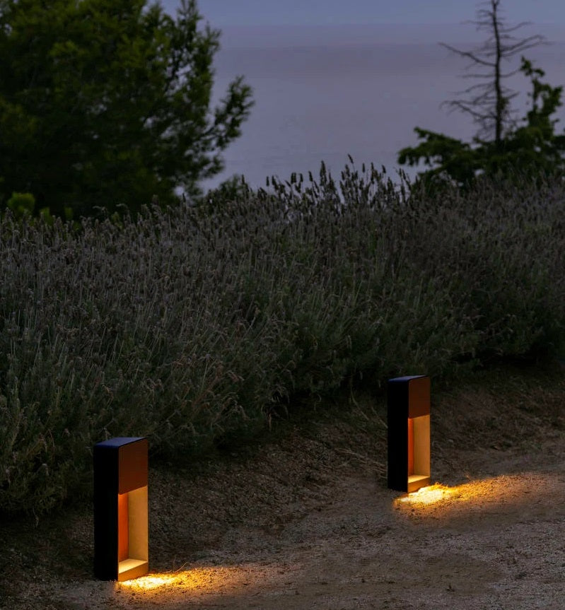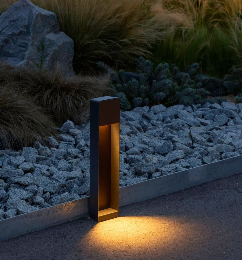 Lab er en rektangel udendørs pullert, med lys pegende nedad.