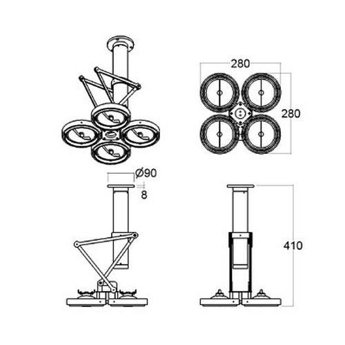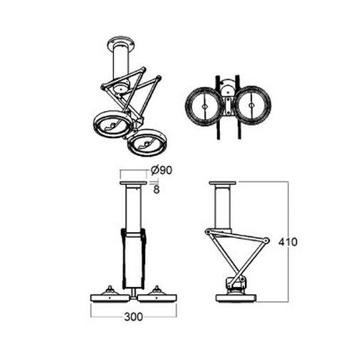 Dimentioner: 300 x 225 x 450 mm Lyskilde: 2 x QR111 G53 max 50 watt IP20 Røret kan laves i op til 1,5 meter.