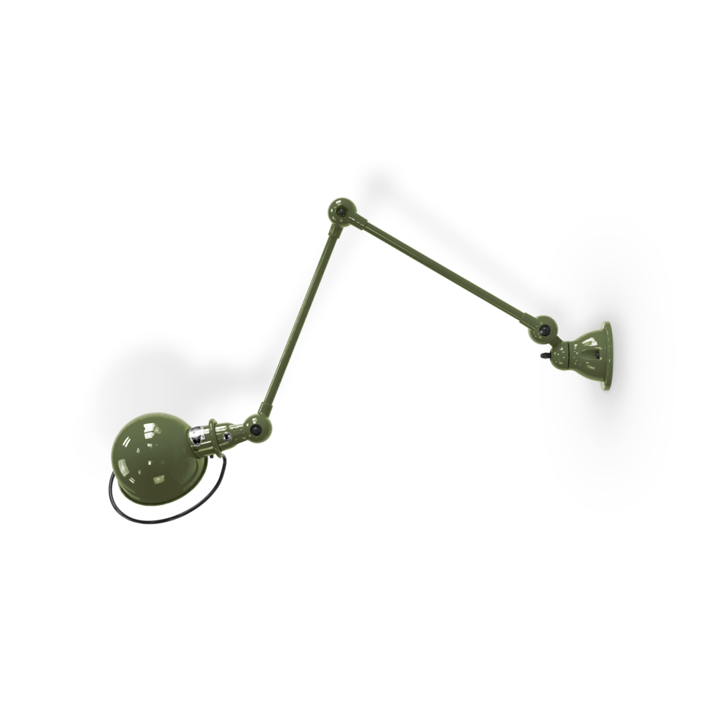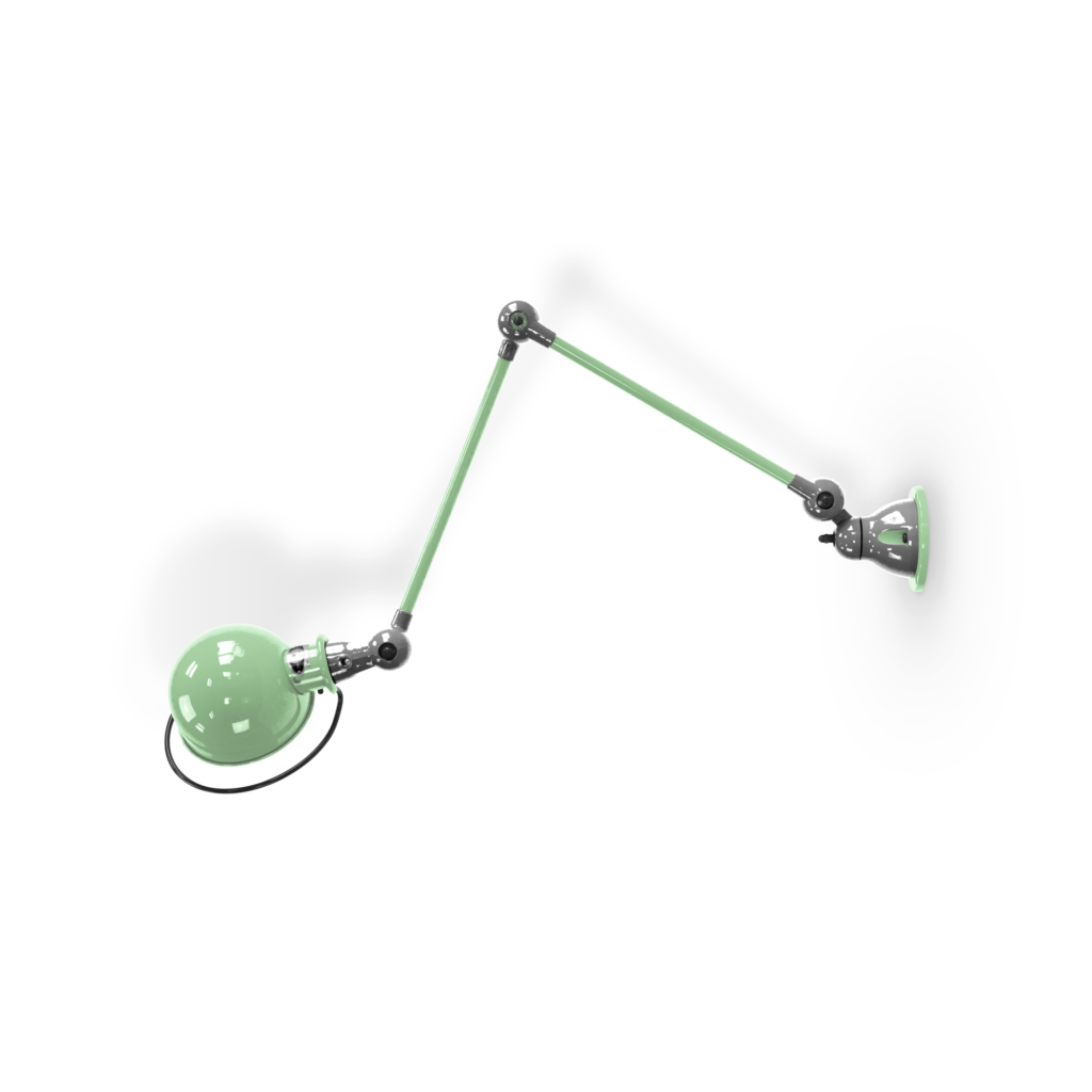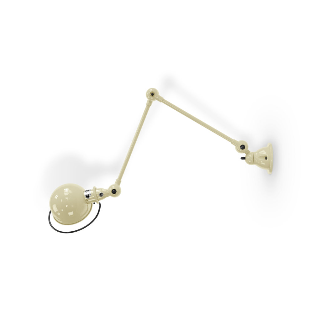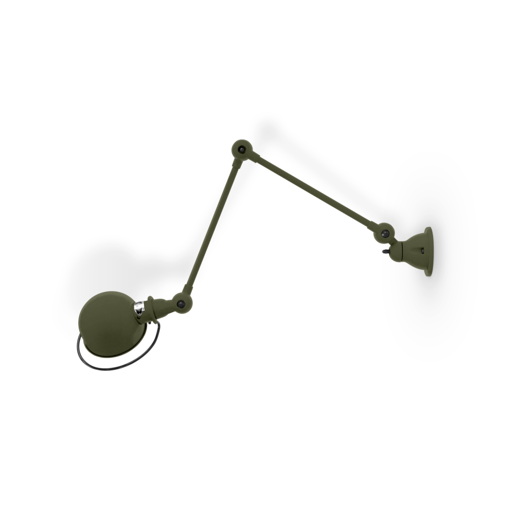 Jieldé væglampen kan fås som matte, blanke, eller blanke med poleret stål, hvoraf enkelte farver kun fås i den ene.