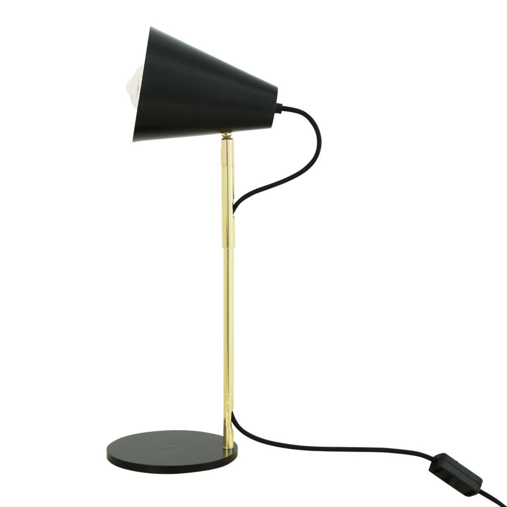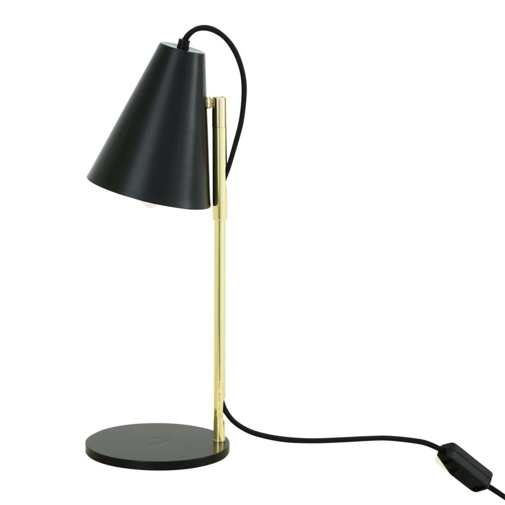 Skærmen er af messing og fås sort og hvid kombineret med messing
