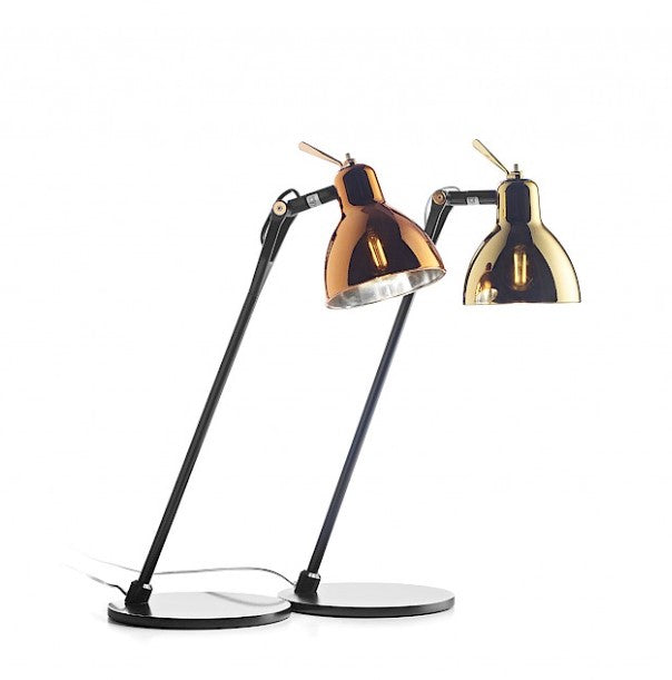 Bordlampen har en E14 fatning, og kan bruge halogen, LED eller sparepærer.
