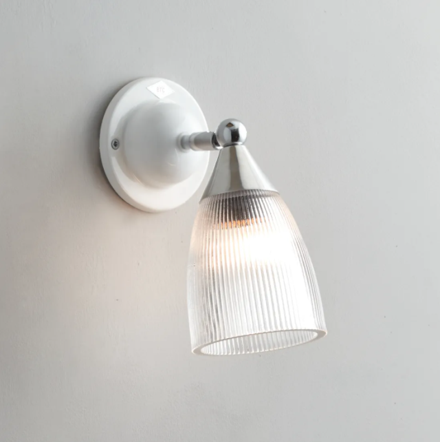 Farve: klart Prismatisk glas og mat hvid porcelæns roset