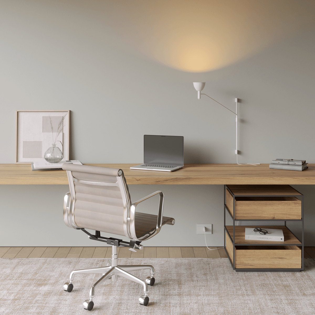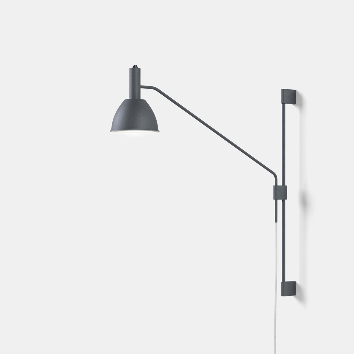 Aluminiums væglampe i en ren stil med intelligent højde justeringssystem og med justerbare hoved så lyset kan rettes hen hvor man ønsker dette.