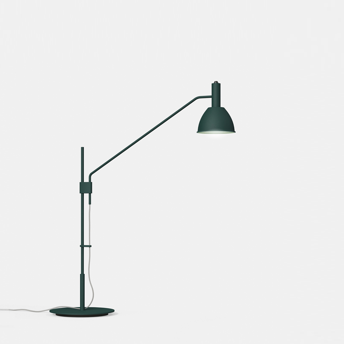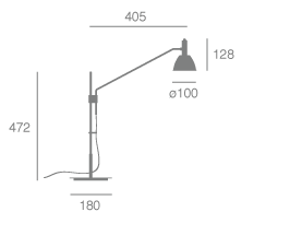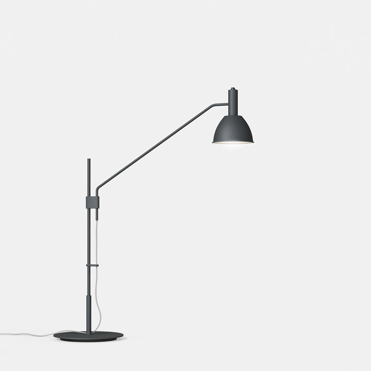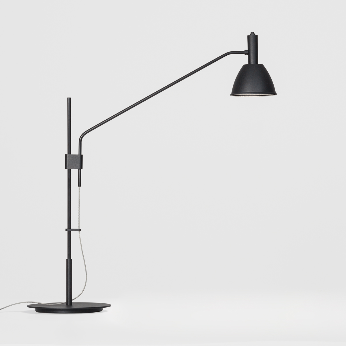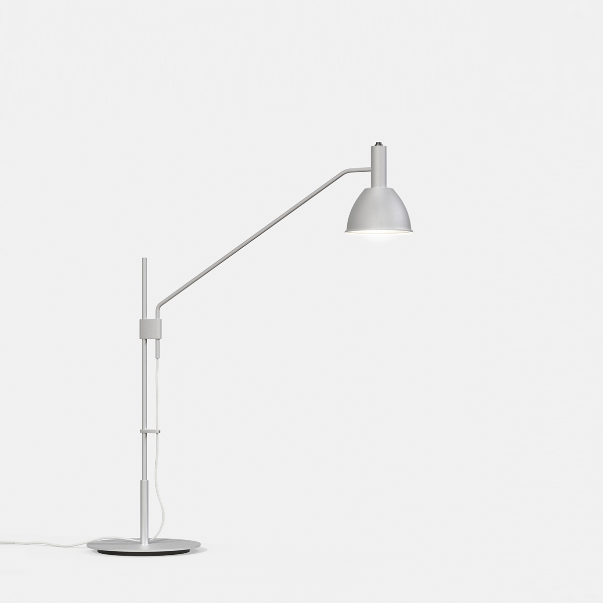 Aluminiums bordlampe i en ren stil med intelligent højde justeringssystem som ikke kræver låse eller skruer og med justerbare hoved så lyset kan rettes hen hvor man ønsker dette.