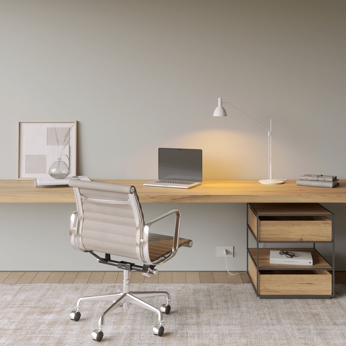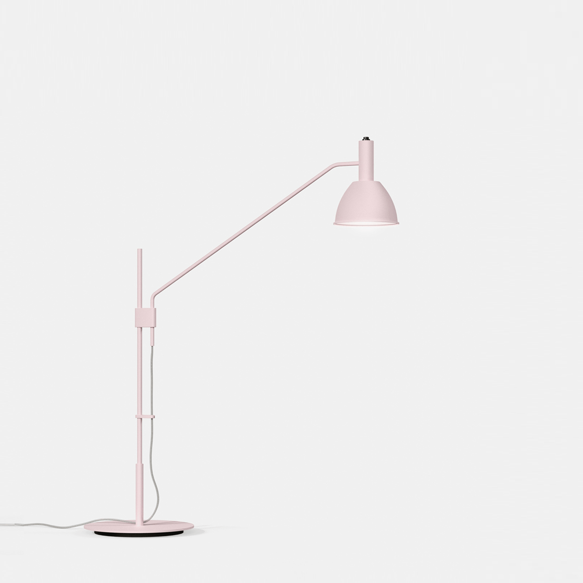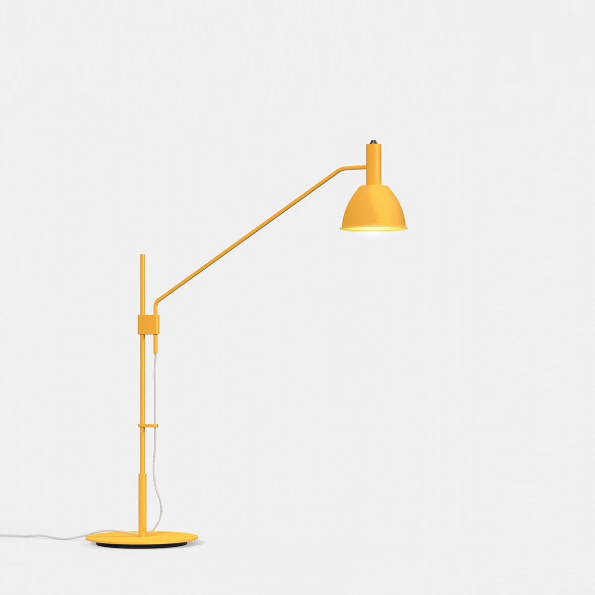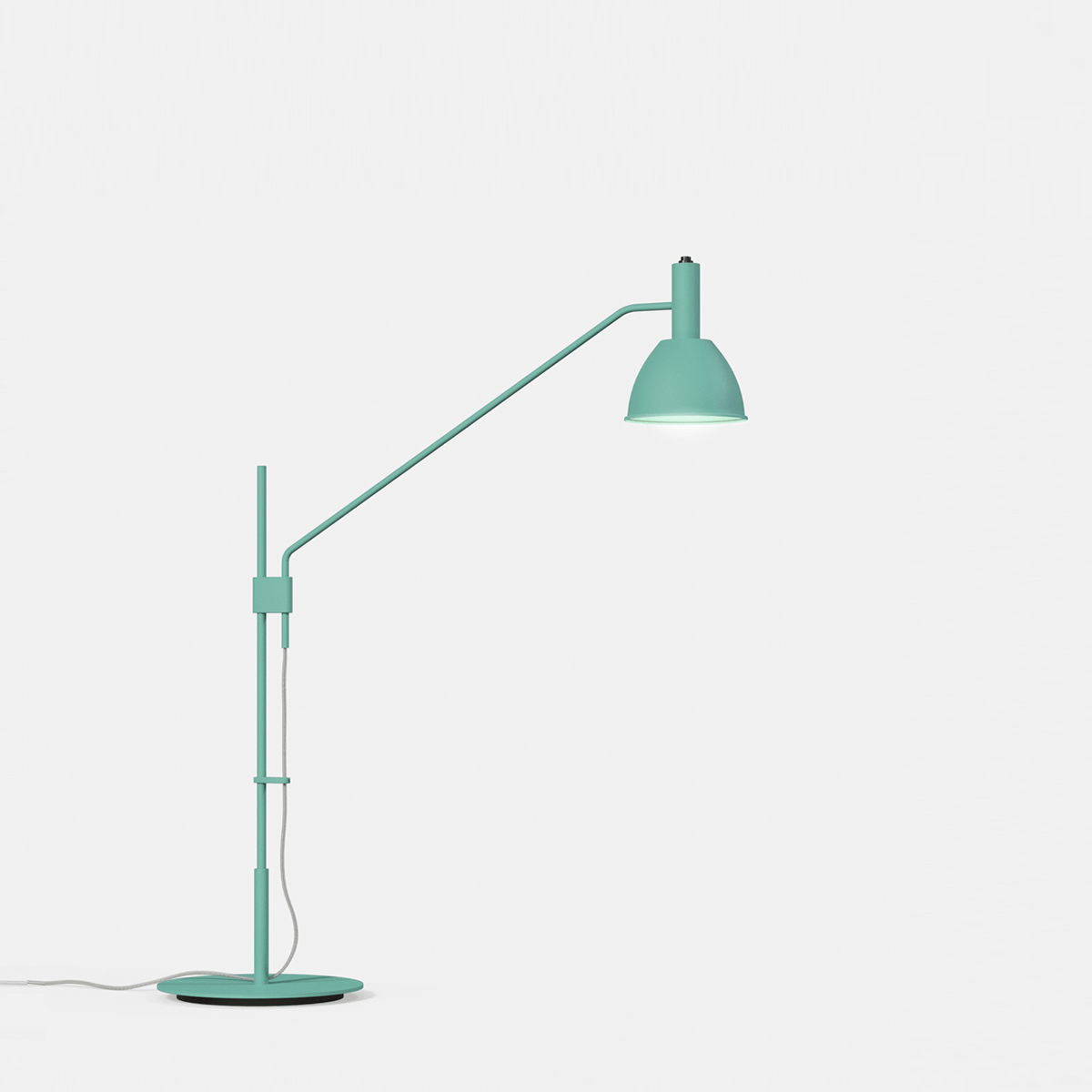 Aluminiums bordlampe i en ren stil med intelligent højde justeringssystem som ikke kræver låse eller skruer og med justerbare hoved så lyset kan rettes hen hvor man ønsker dette.