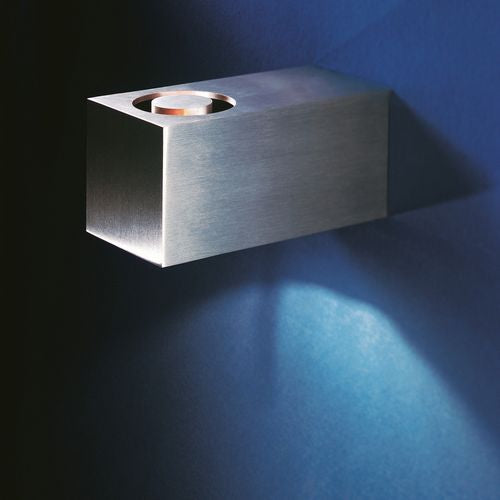 Fatning: GU 5,3 ALU max 35 watt 12 / 230 V Materiale: Massiv aluminium Farve: Malet metalgrå eller børstet aluminium. Højde: 6 cm Bredde: 6 cm Dybde: 12,1 cm