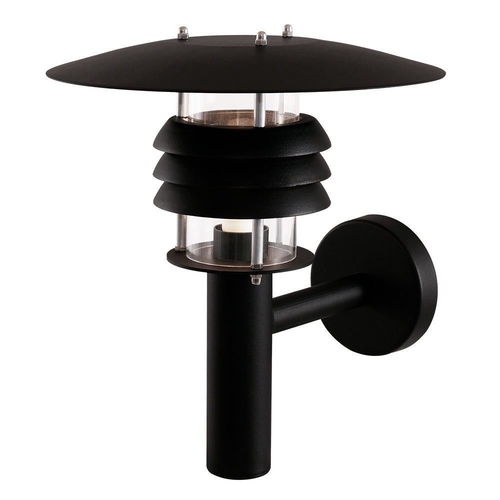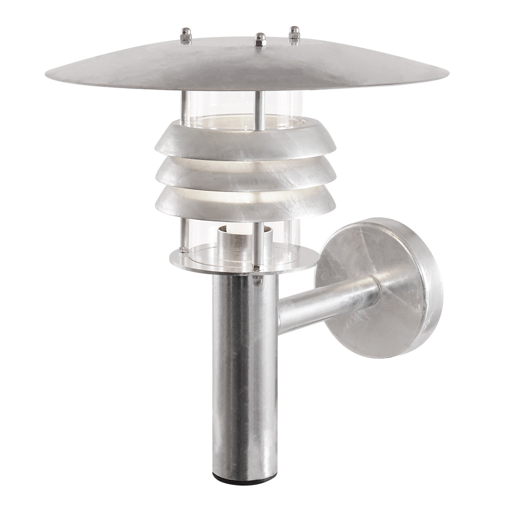 Mike væglampe fra david superlight. Opbygning: Buede mellem skærme og topskærm for nedadgående lysvinkel. Flad vægkonsol uden synlige skruer. Materiale: Vægarm, mellem- og topskærm i varmgalvaniseret stål, afstandsrør i aluminium, skruer og møtrikker i rustfri stål.