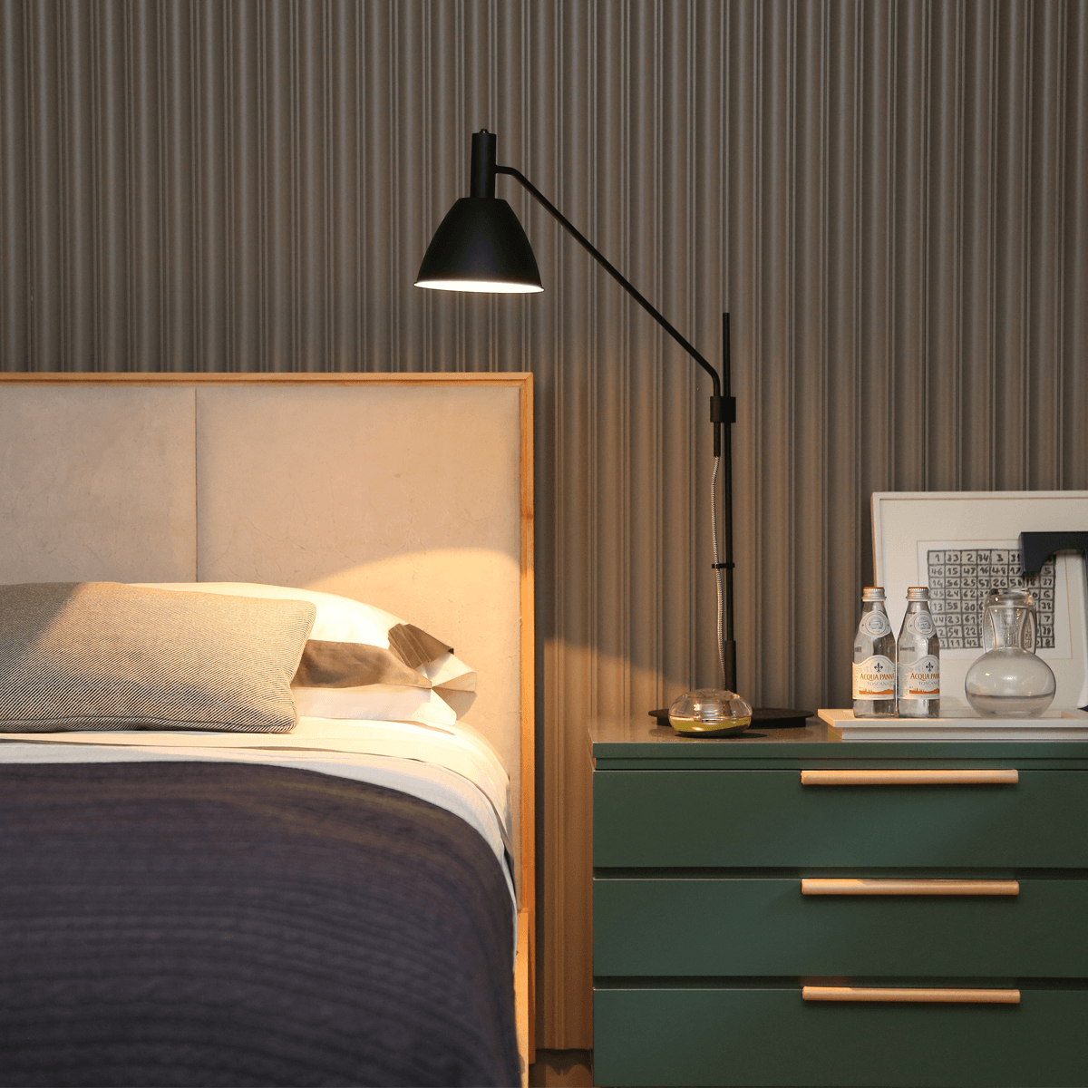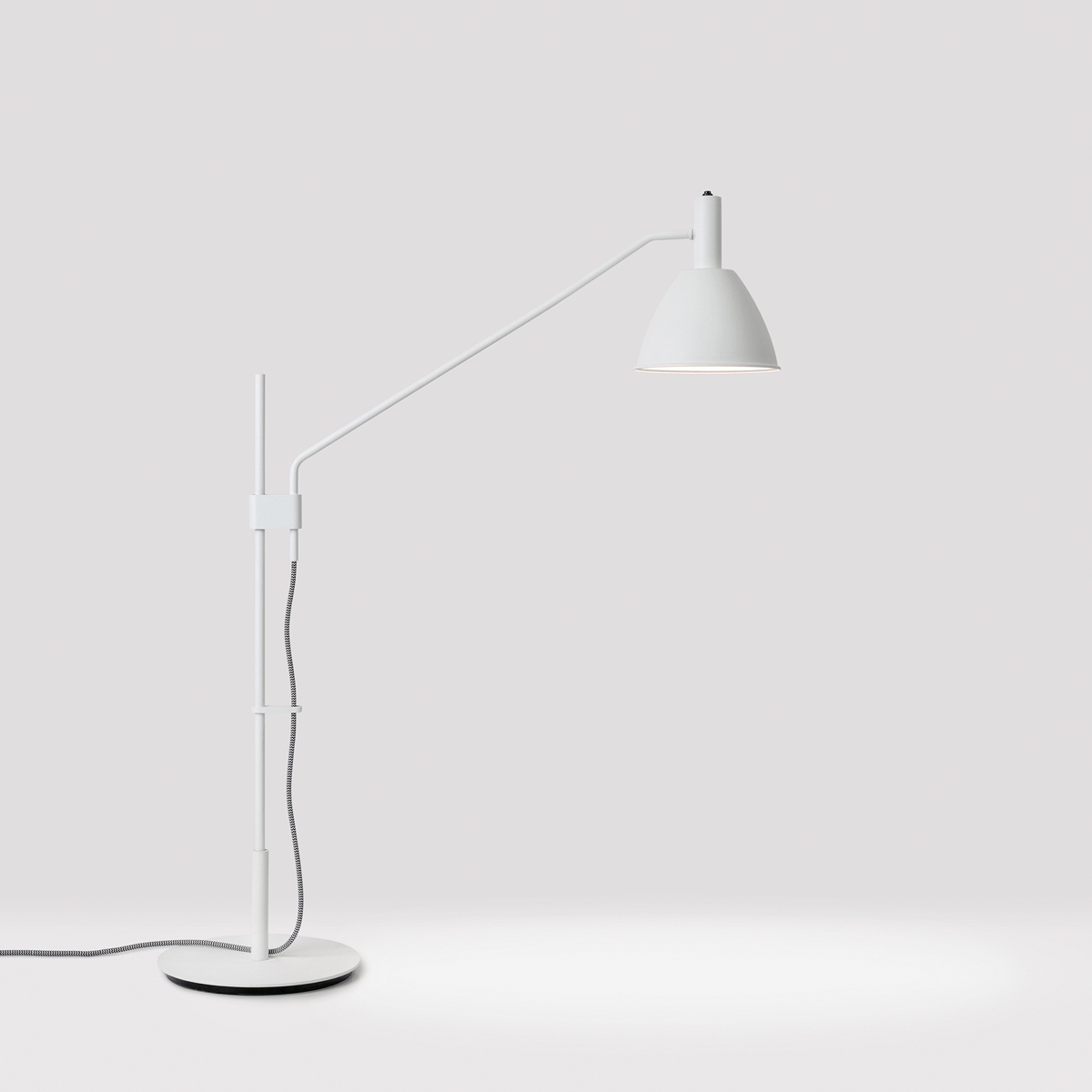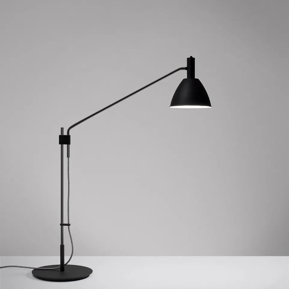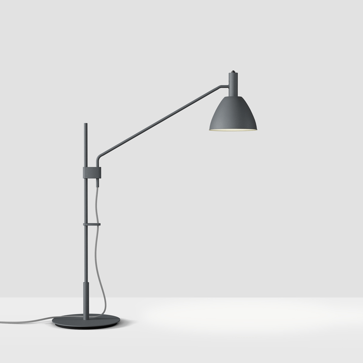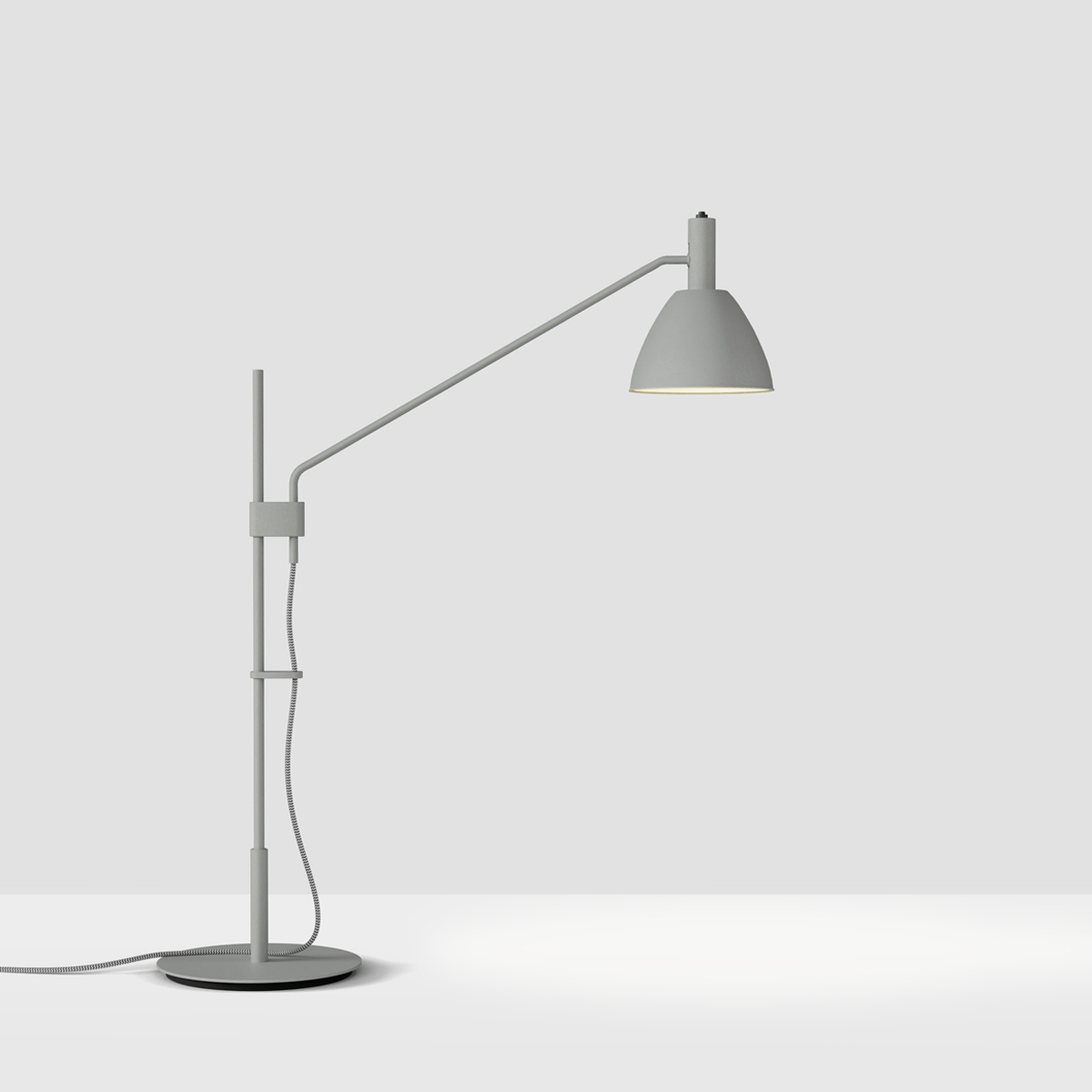 Aluminiums bordlampe i en ren stil med intelligent højde justeringssystem som ikke kræver låse eller skruer og med justerbare hoved så lyset kan rettes hen hvor man ønsker dette.