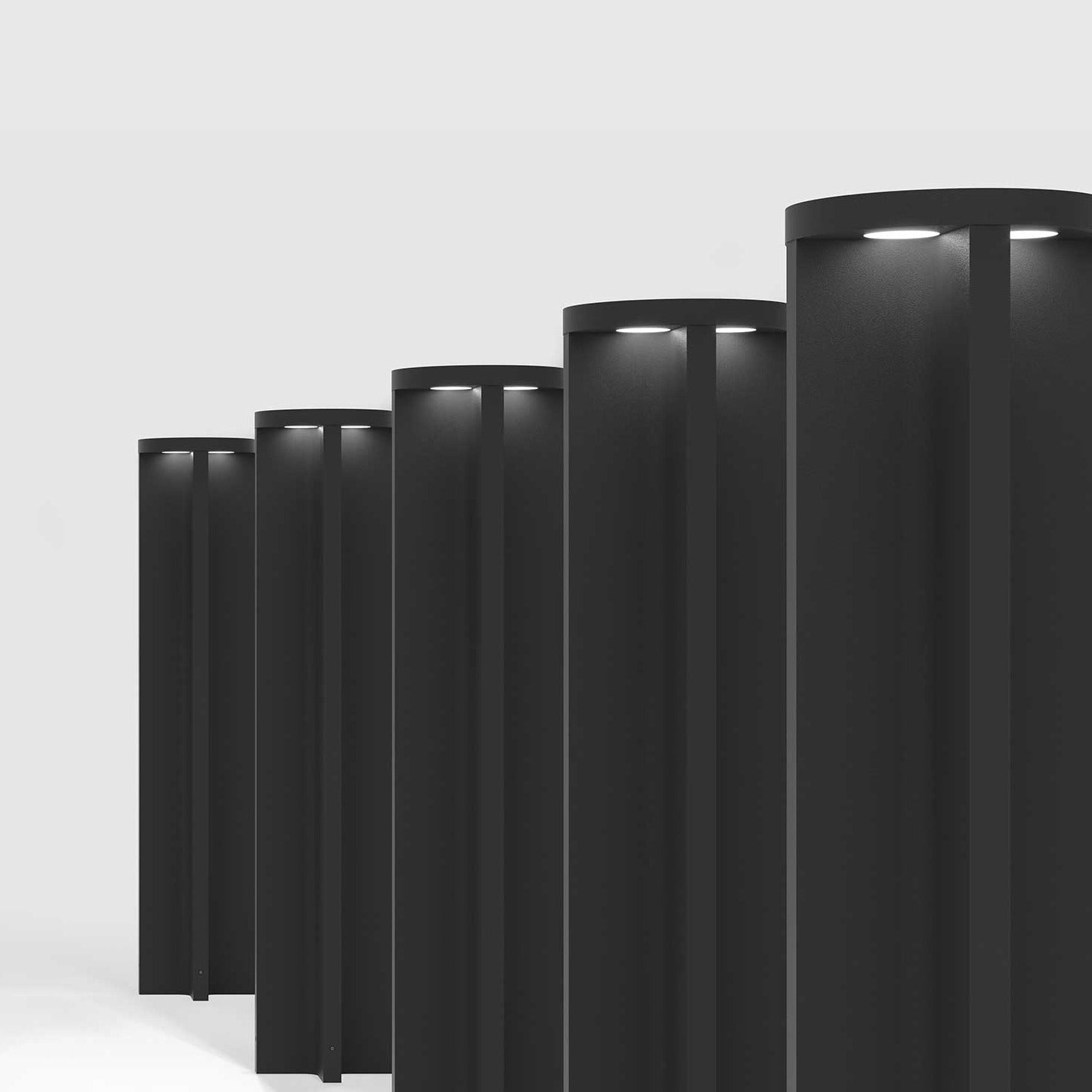 Belysningen er nedadgående, med skygger der adskiller lysene, og fås i to forskellige farver.