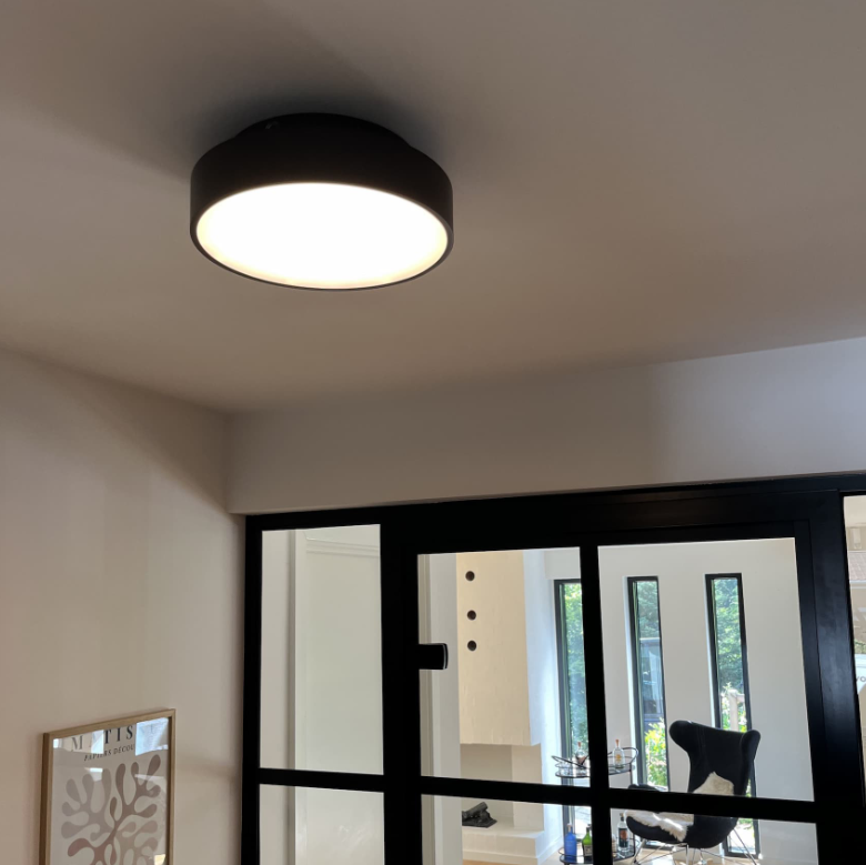 Lampen installeres direkte på loftet, og dets slanke design optager minimal plads i rummet, hvilket er en effektiv udnyttelse af plads, specielt i områder med lavt loft.