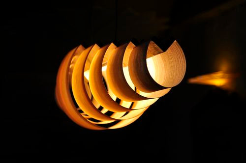 Finn August Kaerulff har her med sin dybe kendskab til træ og lyset spil laven en dynamisk pendel som er smuk og tidsløs.