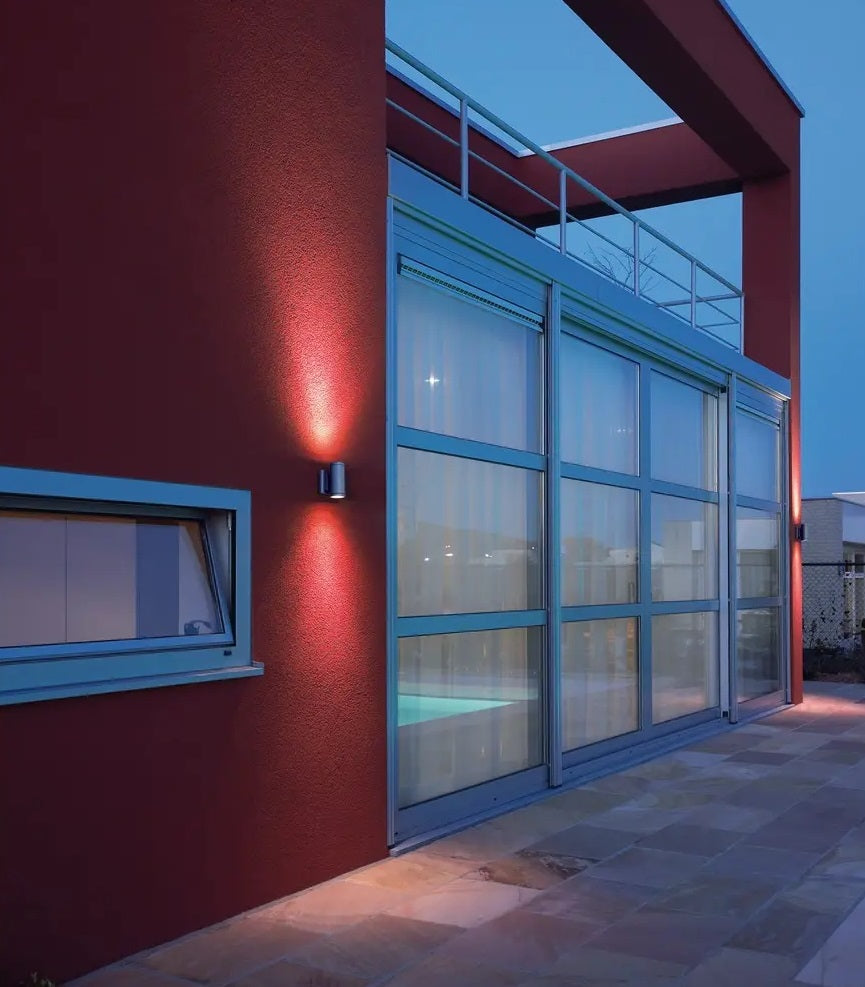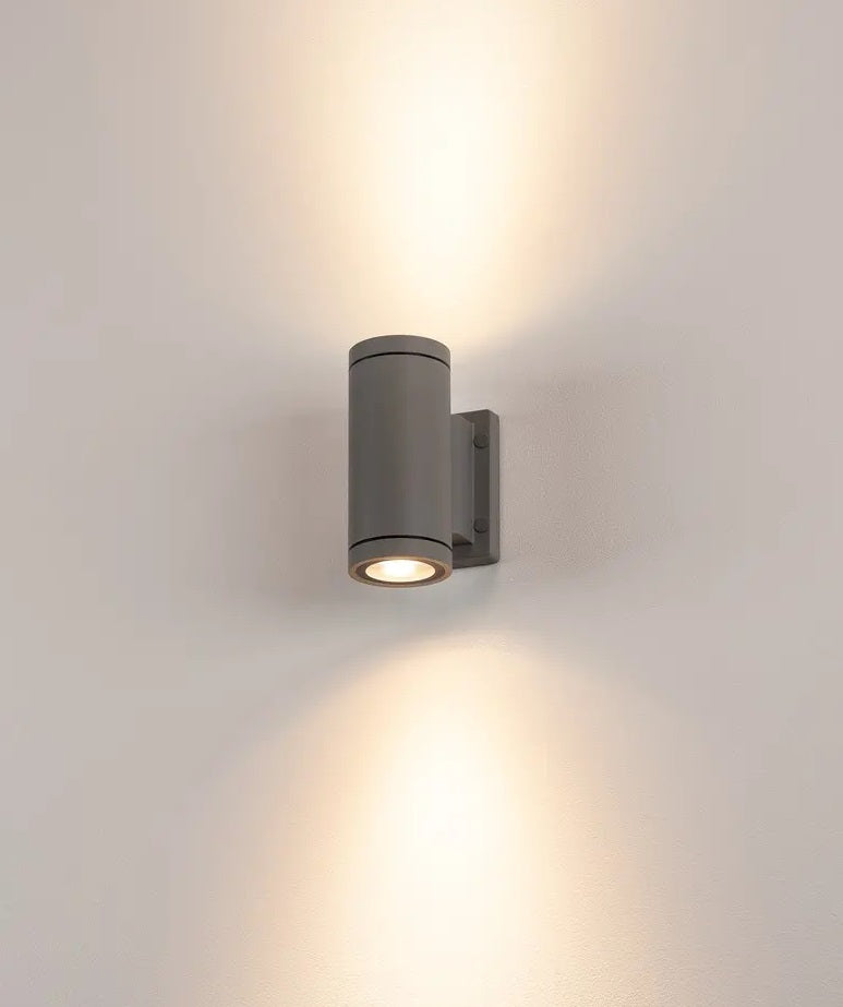 Myra væglampe lavet af aluminium og glas, og har en IP55 beskyttelsesklasse, hvilket gør den velegnet til udendørs brug.. Myra up/down har både lys foroven og forneden. Væglampen fås i grå og antracit.