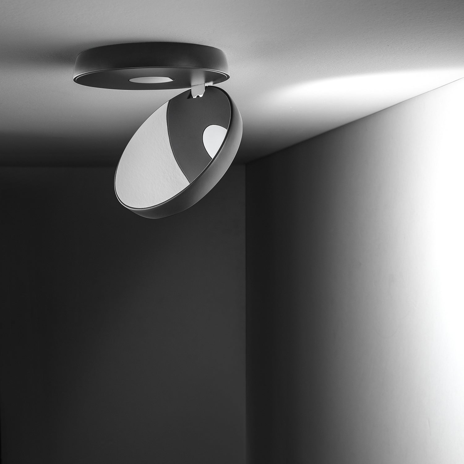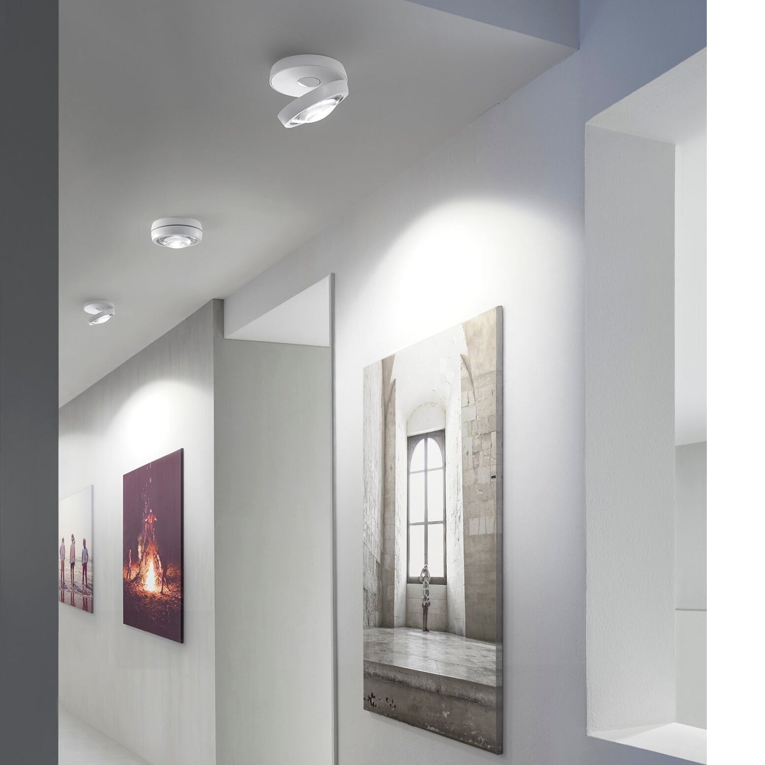 Smart designet Loftlampe med en elegant og smuk linse på, som kan vippe 90 grader ned og dreje 360 grader rundt.