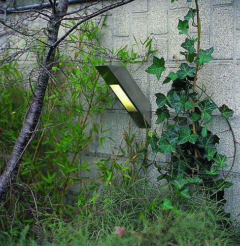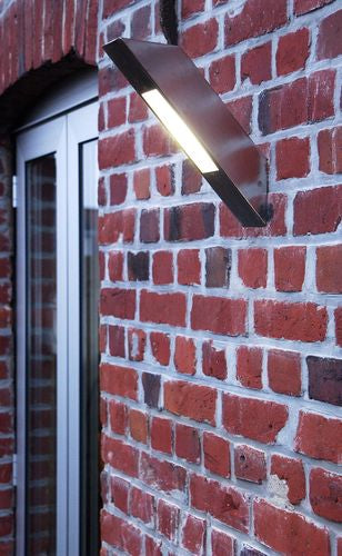 Udendørslampe i rustfrit stål. Der er 1 åbning i fronten, der sendes lyset frem.