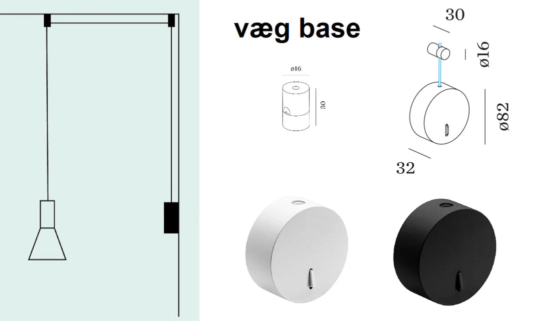 Den leveres med ledning i 400 cm og hertil kan du så vælge en af Wever & Ducré mange forskellige montage / installations muligheder både til indbygning / påbygning / skinner i flere størrelser til 2 eller op til 5 pendler.