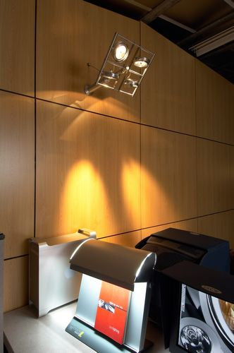 Bruges til at give godt spottet lys på spisebord eller op i lofter. Indbygget transformer.