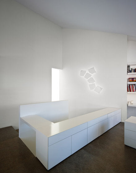 Producent VIBIA Designer Ramón Esteve orgami væglampe sammensæt op til 30 stk. og lav dit eget mønstre med indirekte LED lys.overflade farven er er hvid, grøn eller brun.
