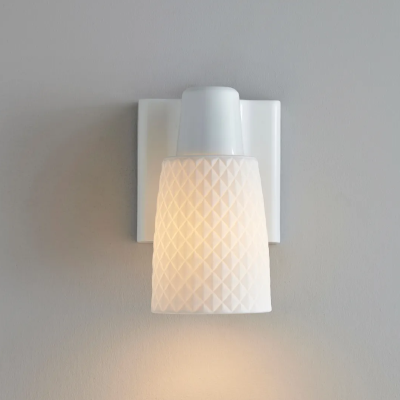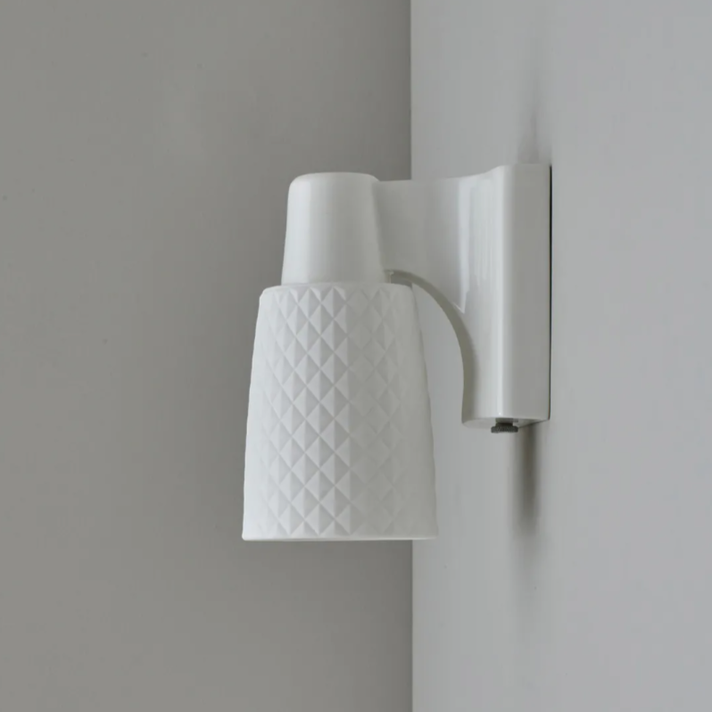 Oxford 1 wall væglampe med smuk Engelsk dobbelt porcelæn skærm nu med stel i porcelæn.