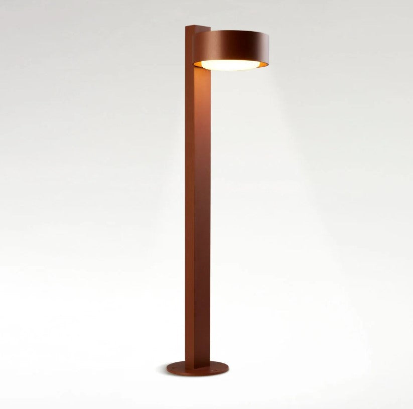 Plaff-On har et hvidt frosted glas med en ydre aluminium skærm i sort eller rustbrun, og giver et diffust lys.