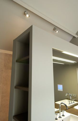 Kan dreje vertikalt 30 grader og til siderne. Indbygget transformer.
