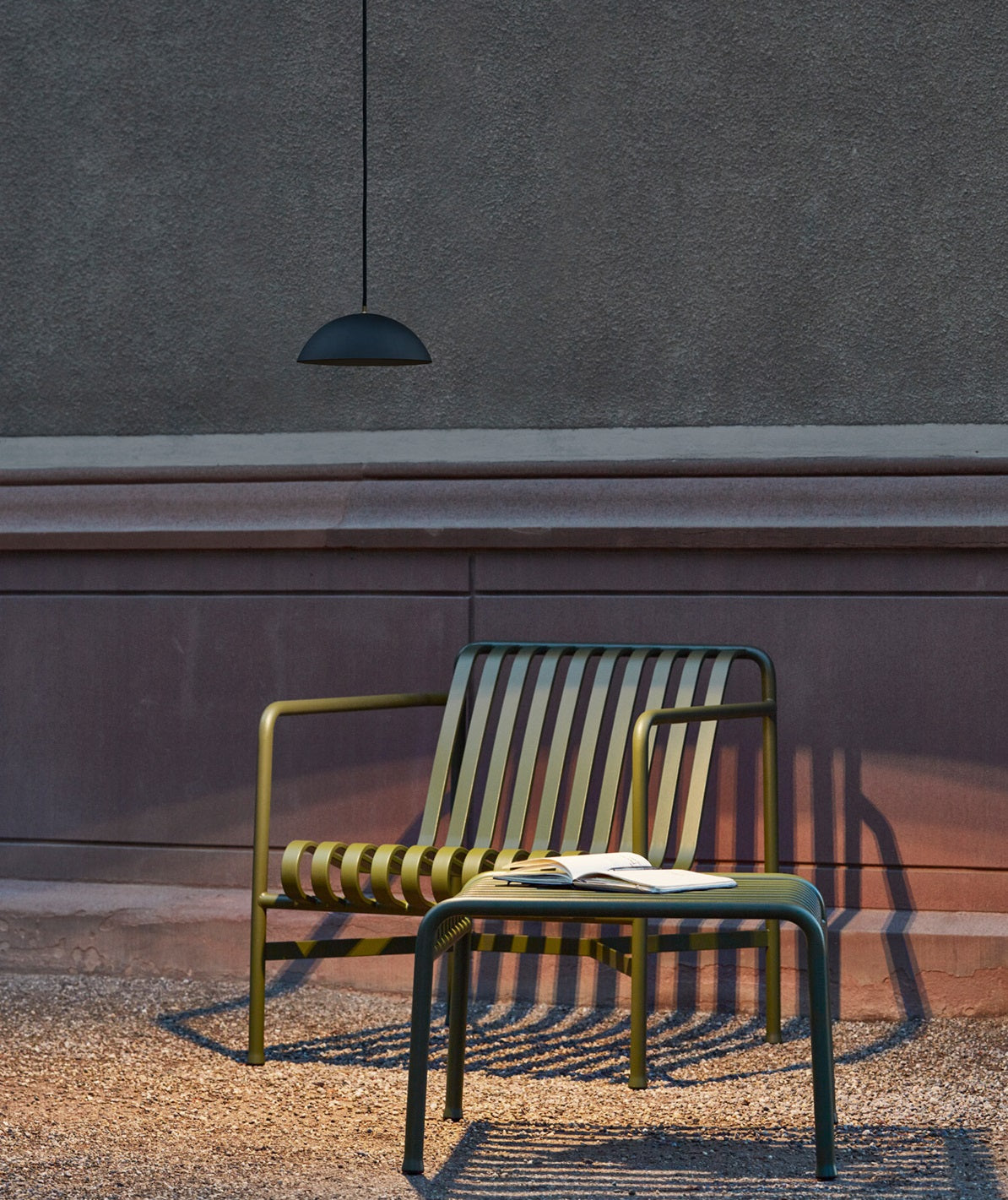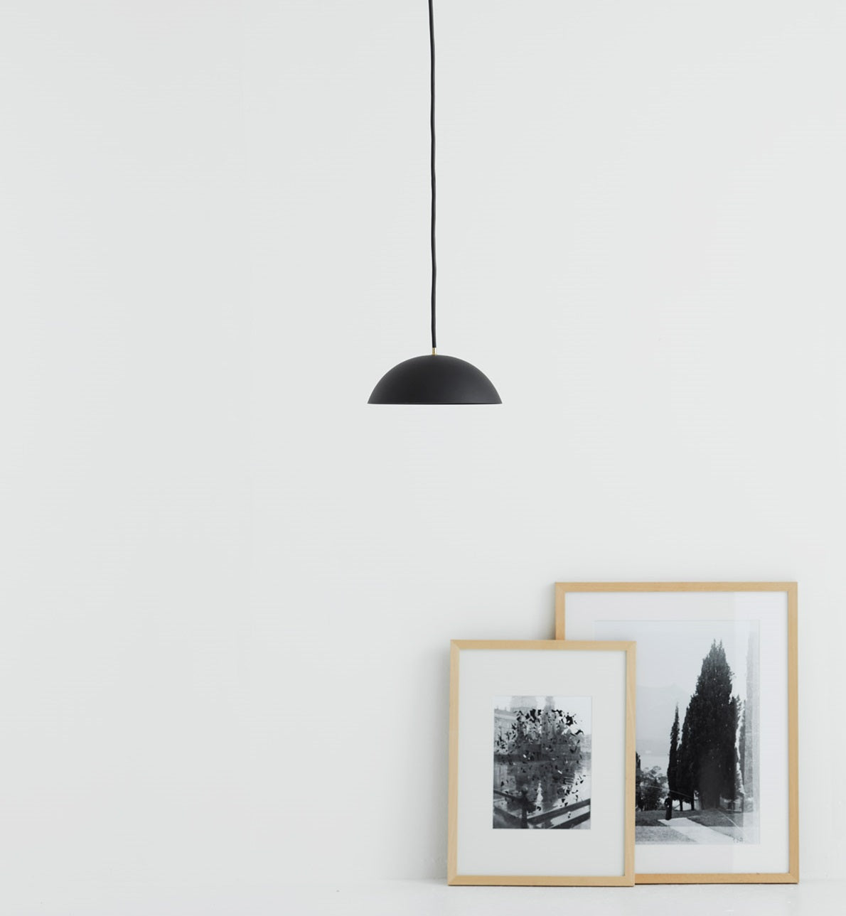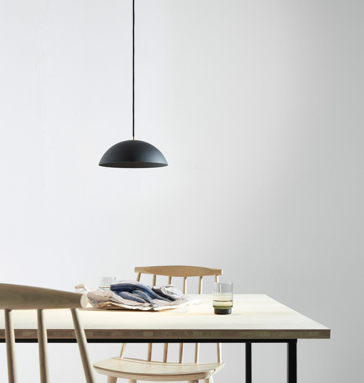 En smuk pendel med en blød, klar linje i metal lampeskærmen som er udformet fra et stykke materiale.