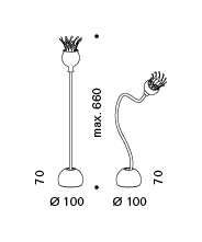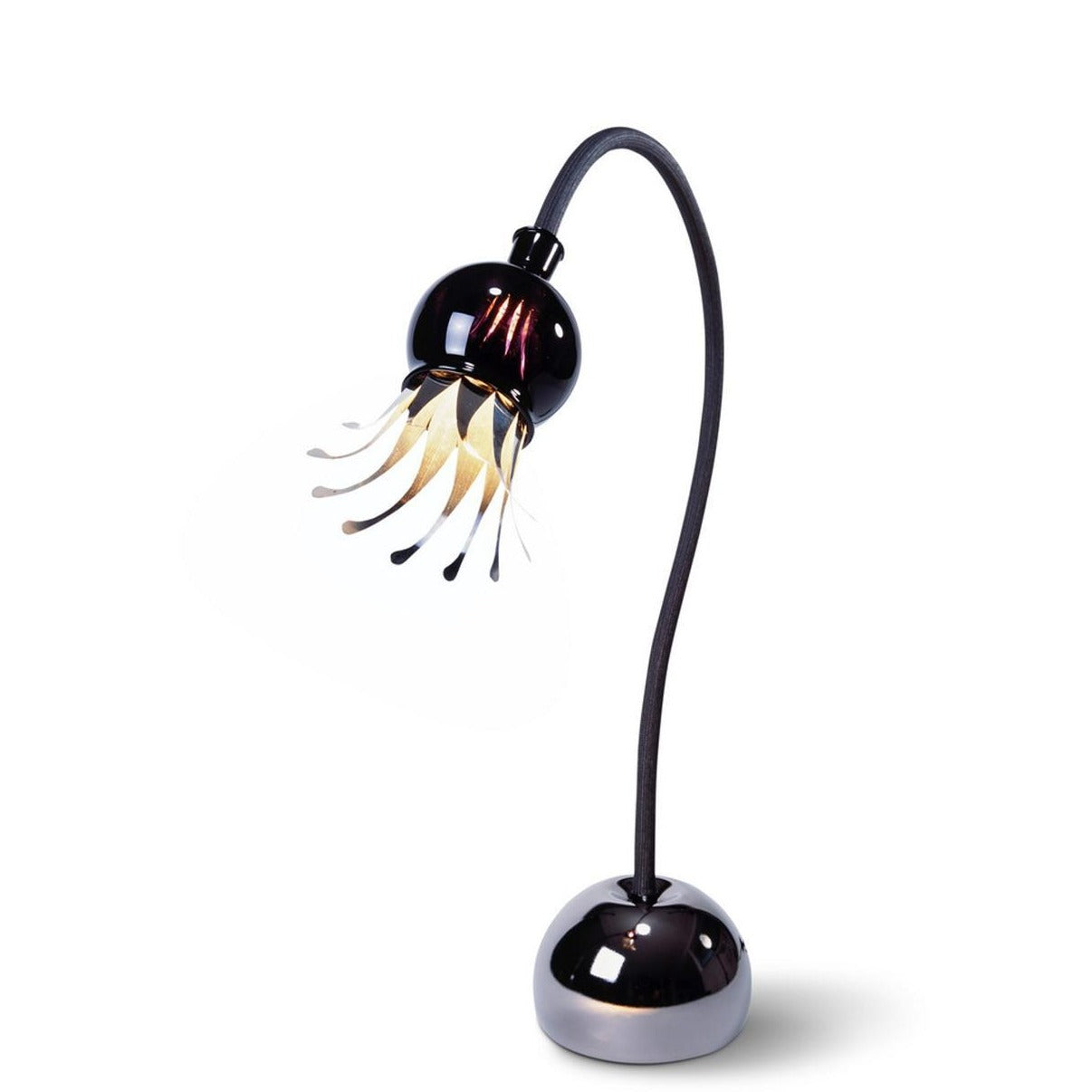 Når du tænder for Poppy bordlampen så åbner hovedet sig gradvist på grund af varmen som får metallet til at bøje sig.