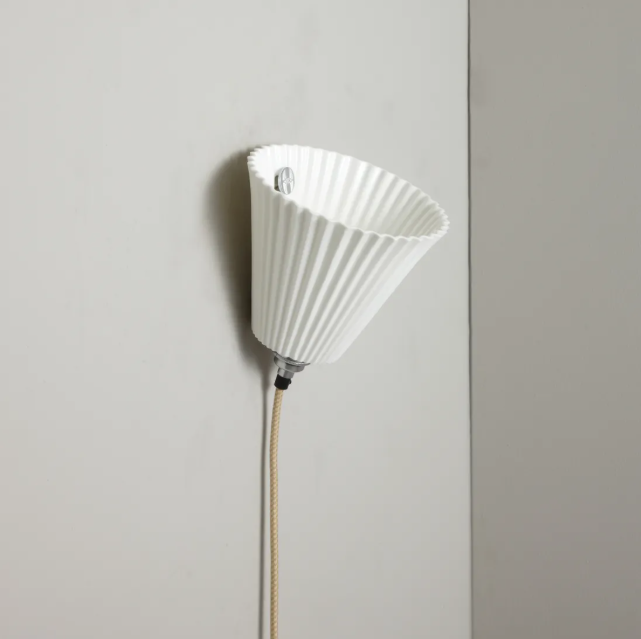 En transportabel væglampe i porcelæn. Lige til at hænge op på væggen og den giver et perfekt blødt lys opad.