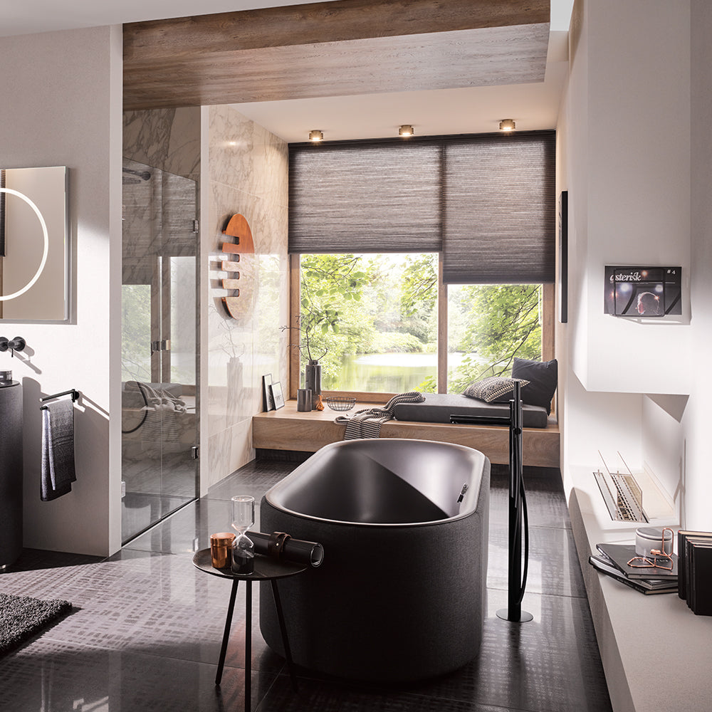 Stel farverne er 6 forskellige krom, mat krom, mat nikkel, sort, hvid, antracit og 24 karat belagt blank guld/krom og hvis man ønsker et større antal lamper i en Ral farve, så er det også muligt.
