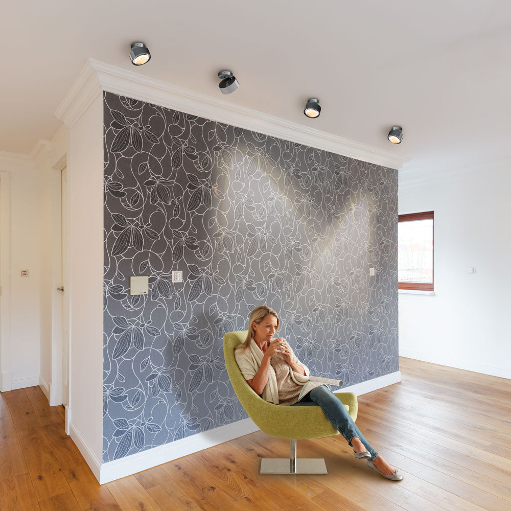 Puk Maxx move LED, G9 up, spot fra Top-Light lyser ned og alle versionerne skal tilkøbes glas til lys op eller ned og vælges farve.