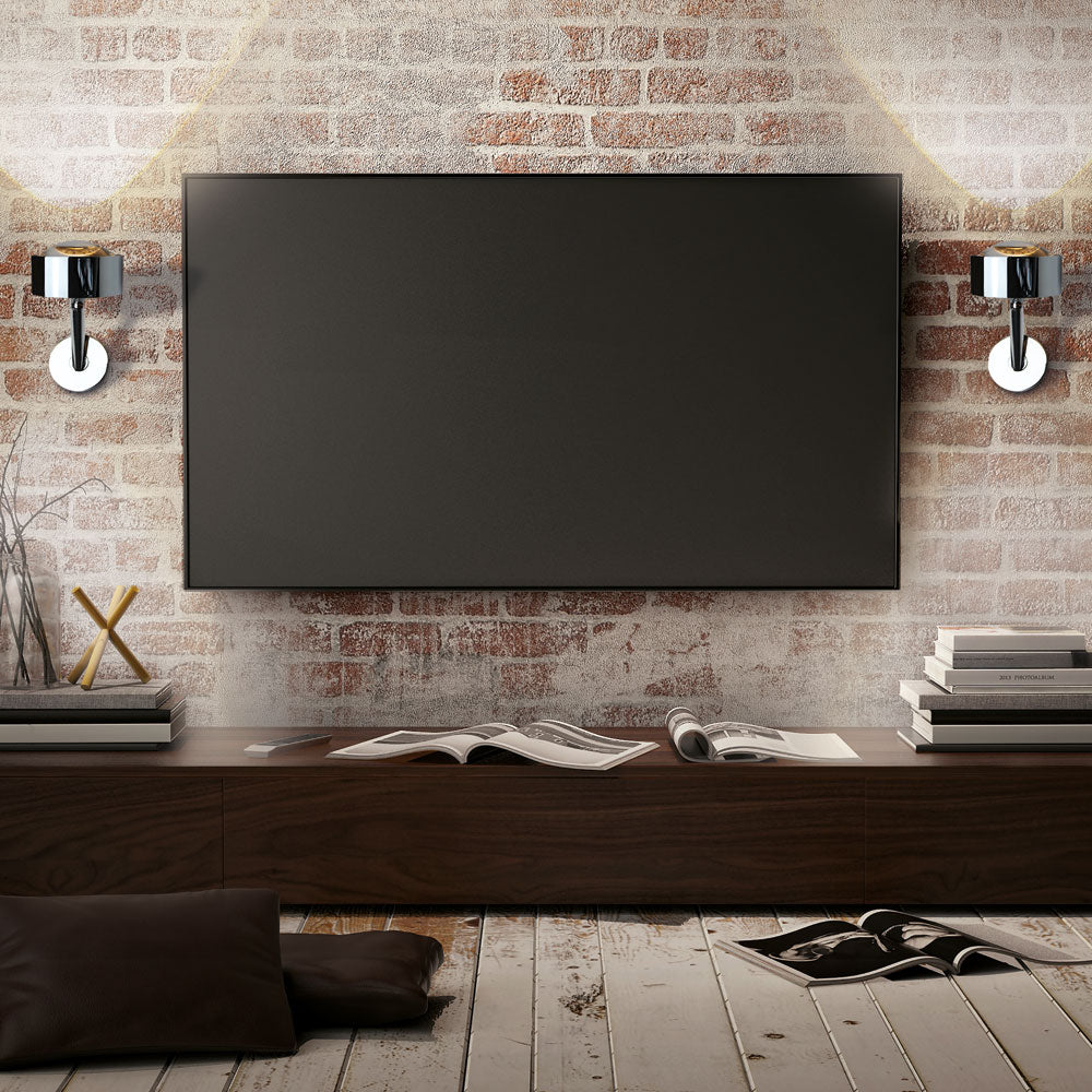 På grund af de to delte arm, som kan dreje 360 gr. hver for sig ,det gør at denne spot kan placere på et skråt loft og dreje til siden så at lyskeglen bliver lige.