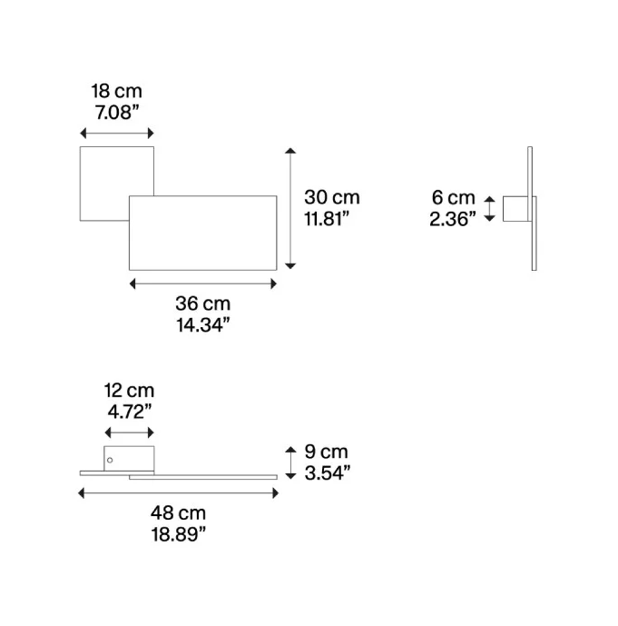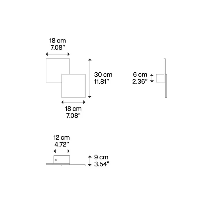 Smart designet væglampe bygget op med en eller to flade plader i firkantede eller rektangulære.