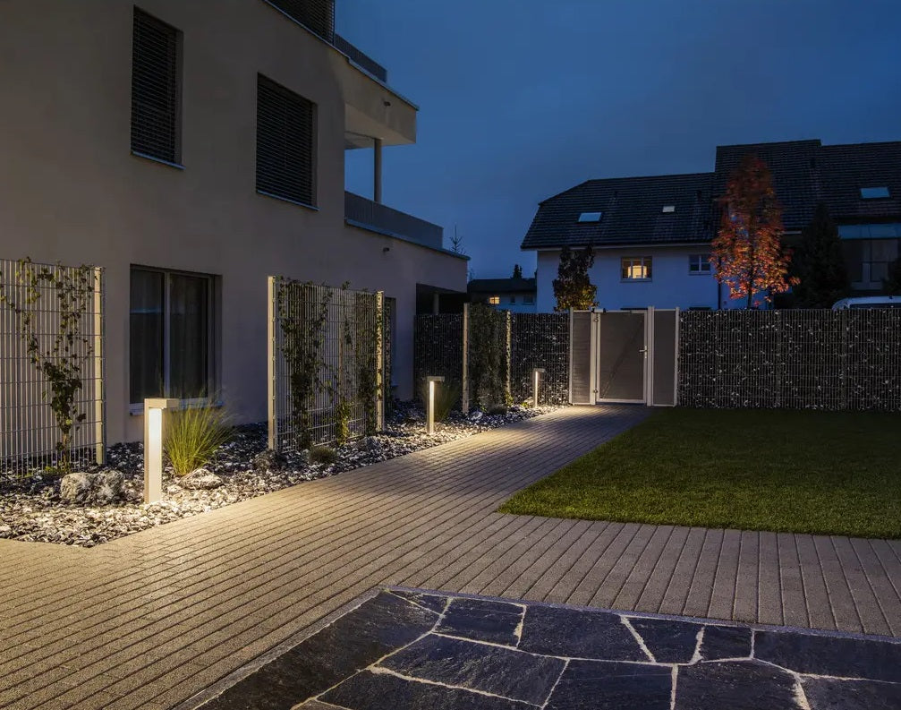 Quadrasyl pullert i malet aluminium, med en IP44 beskyttelsesklasse, der gør den ideel til udendørs brug. Quadrasyl findes også som væglampe, så man også kan få den "røde tråd" i sin have.