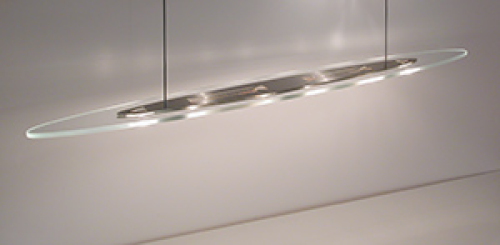 Materialer: planglas fås i farverne klart / blå / turkis / grøn Loft roset i rustfritstål Fatning max 6 x 20W G4 12V / 230V Glas længde - 110 cm Glas bredde - 14,6 cm